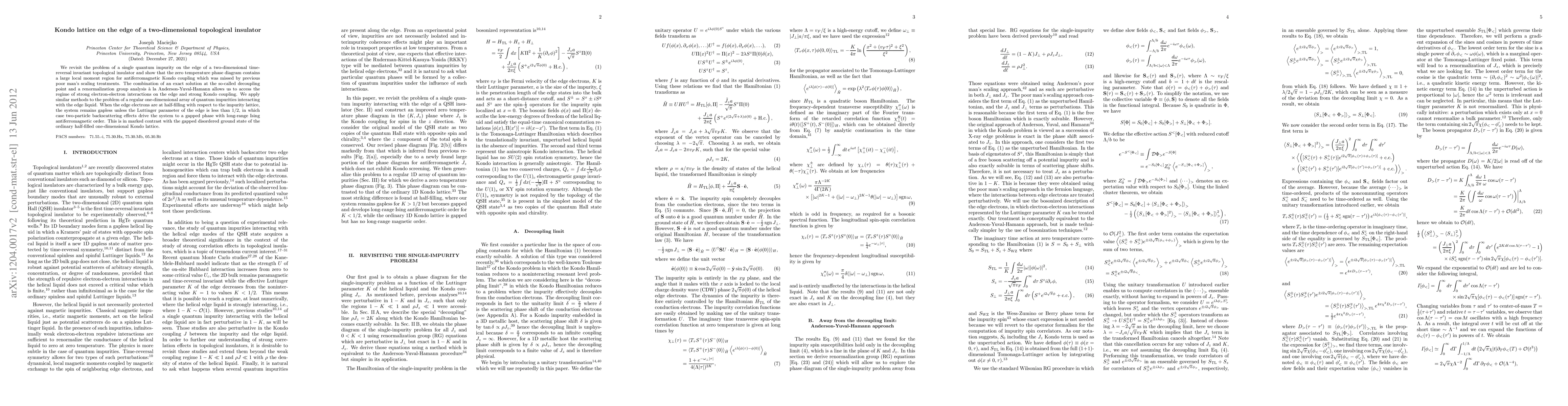 This paper explores the Kondo effect on the edge of a two-dimensional topological insulator, revealing a large region of local moments for antiferromagnetic coupling through exact solutions and renormalization group analysis. It finds that half-filled edge electron interactions with an impurity lattice can lead to a gapped phase with Ising antiferromagnetic order, contrasting with the disordered gapped state of a standard one-dimensional Kondo lattice.