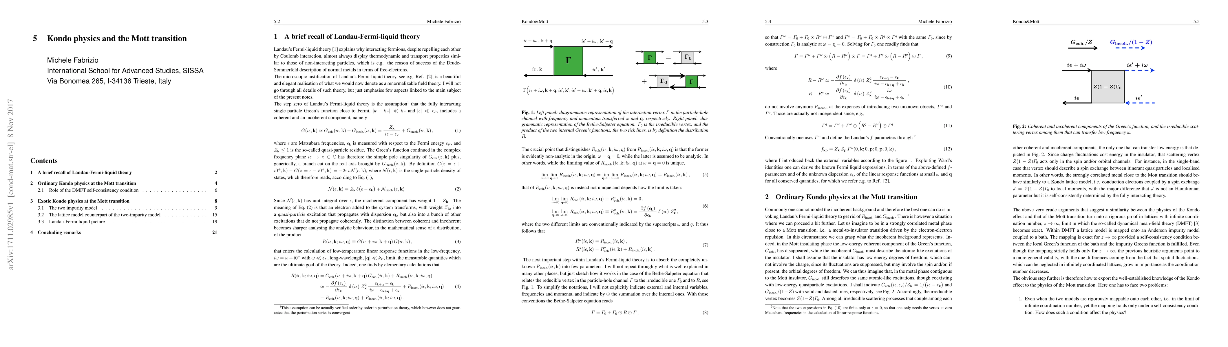 Summary: This paper explores the interplay between Kondo physics, which describes the behavior of magnetic impurities in metals, and the Mott transition, a phenomenon where a metal becomes an insulator due to strong electron correlations. The lecture notes provide insights into how these two concepts are interconnected in the study of correlated electron systems.