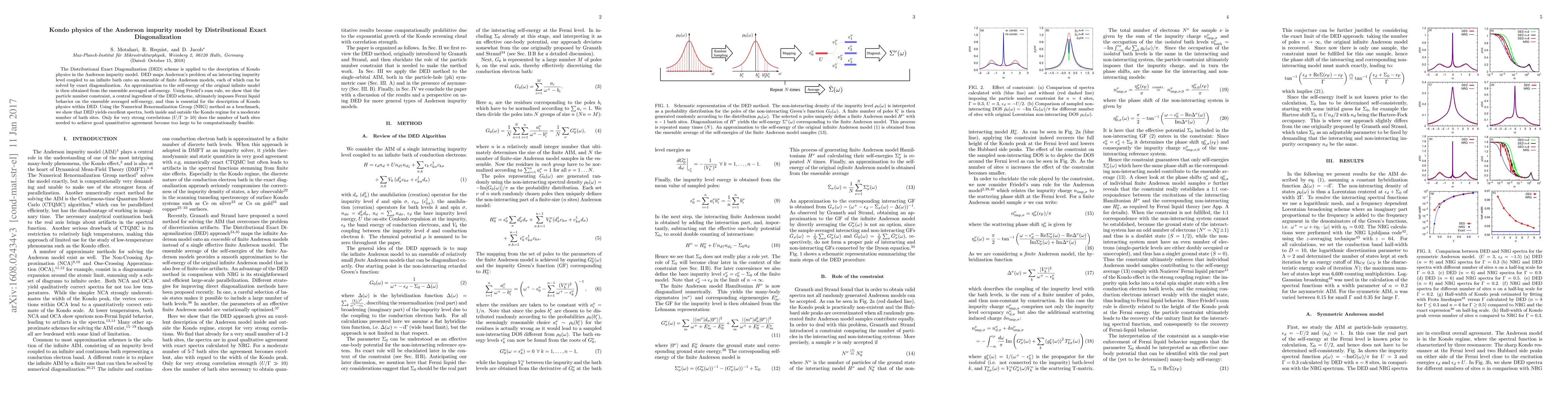 The Distributional Exact Diagonalization (DED) scheme effectively describes Kondo physics in the Anderson impurity model by mapping it onto finite models and averaging their self-energies. The method yields accurate spectra both inside and outside the Kondo regime, but becomes computationally challenging for very strong correlations.