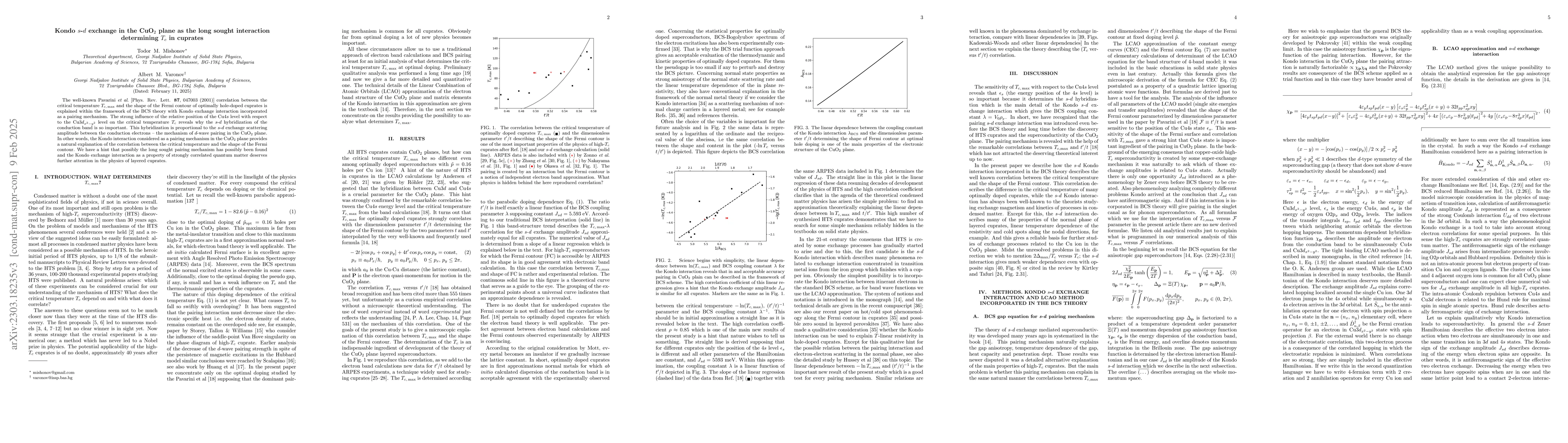 The well-known Pavarini et al. [Phys. Rev. Lett. 87, 047003 (2001)] correlation between the critical temperature $T_c$, max and the shape of the Fermi contour of the optimally hole-doped cuprates are explained within the framework of the BCS theory with Kondo exchange interaction incorporated as a pairing mechanism. The strong influence of the relative position of the Cu4$s$ level with respect to the Cu3$d_{x^2-y^2}$ level on the critical temperature $T_c$ reveals why the $s$-$d$ hybridization of the conduction band is so important. This hybridization is proportional to the $s$-$d$ exchange scattering amplitude between the conduction electrons -- the mechanism of d-wave pairing in the CuO$_2$ plane. In other words the Kondo interaction considered as a pairing mechanism in the CuO$_2$ plane gives a natural explanation of the correlation between the critical temperature and the shape of the Fermi contour. The lack of an alternative explanation for the description of the critical temperature of optimally doped cuprates for several decades gives a hint that the long sought pairing mechanism has already been found.