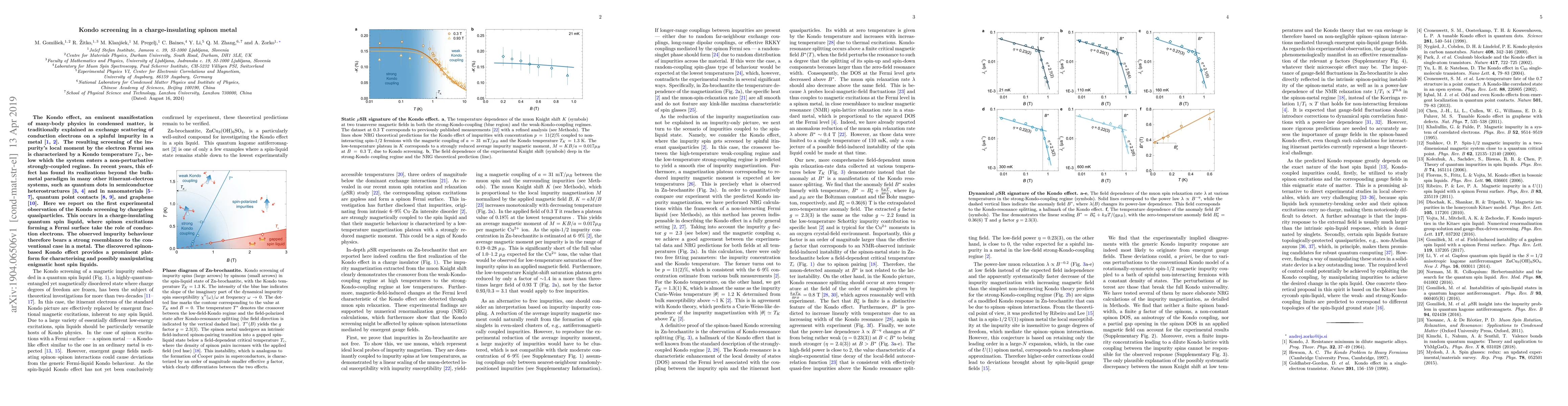 This paper reports the first experimental observation of the Kondo effect in a charge-insulating quantum spin liquid, where spinon excitations replace conduction electrons, demonstrating Kondo screening by chargeless quasiparticles. This discovery provides a new platform for studying and potentially manipulating spin liquids.