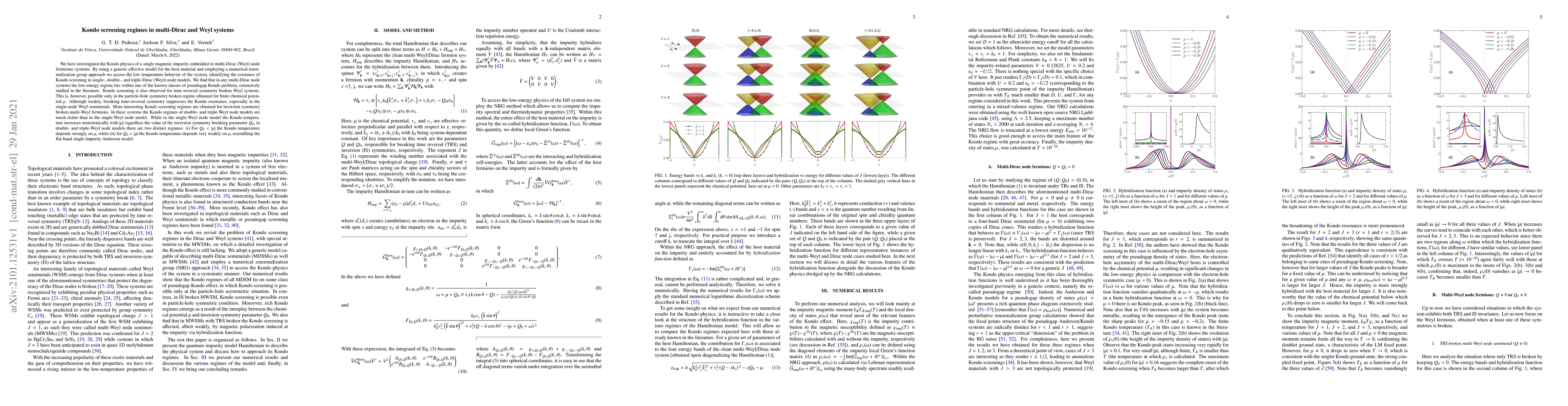 We have investigated the Kondo physics of a single magnetic impurity embedded in multi-Dirac (Weyl) node fermionic systems. By using a generic effective model for the host material and employing a numerical renormalization group approach we access the low temperature behavior of the system, identifying the existence of Kondo screening in single-, double-, and triple-Dirac (Weyl) node models. We find that in any multi-Dirac node systems the low-energy regime lies within one of the known classes of pseudogap Kondo problem, extensively studied in the literature. Kondo screening is also observed for time reversal symmetry broken Weyl systems. This is, however, possible only in the particle-hole symmetry broken regime obtained for finite chemical potential $\mu$. Although weakly, breaking time-reversal symmetry suppresses the Kondo resonance, especially in the single-node Weyl semimetals. More interesting Kondo screening regimes are obtained for inversion symmetry broken multi-Weyl fermions. In these systems the Kondo regimes of double- and triple-Weyl node models are much richer than in the single-Weyl node model. While in the single-Weyl node model the Kondo temperature increases monotonically with $|\mu|$ regardless the value of the inversion symmetry breaking parameter $Q_0$, in double- and triple-Weyl node models there are two distinct regimes: (i) For $Q_0< |\mu|$ the Kondo temperature depends strongly on $\mu$, while (ii) for $Q_0 > |\mu|$ the Kondo temperature depends very weakly on $\mu$, resembling the flat-band single impurity Anderson model.