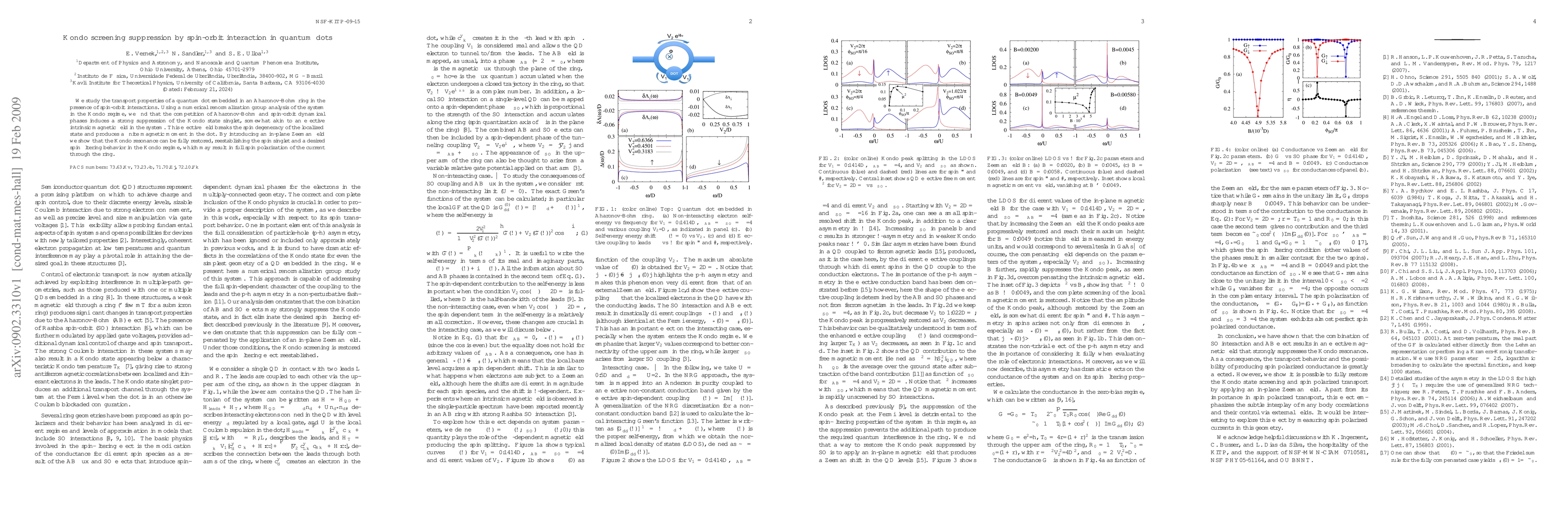 Quantum dots in an Aharonov-Bohm ring exhibit suppressed Kondo state singlets due to spin-orbit interactions, but an in-plane Zeeman field restores the spin singlet and enables full spin polarization of current.