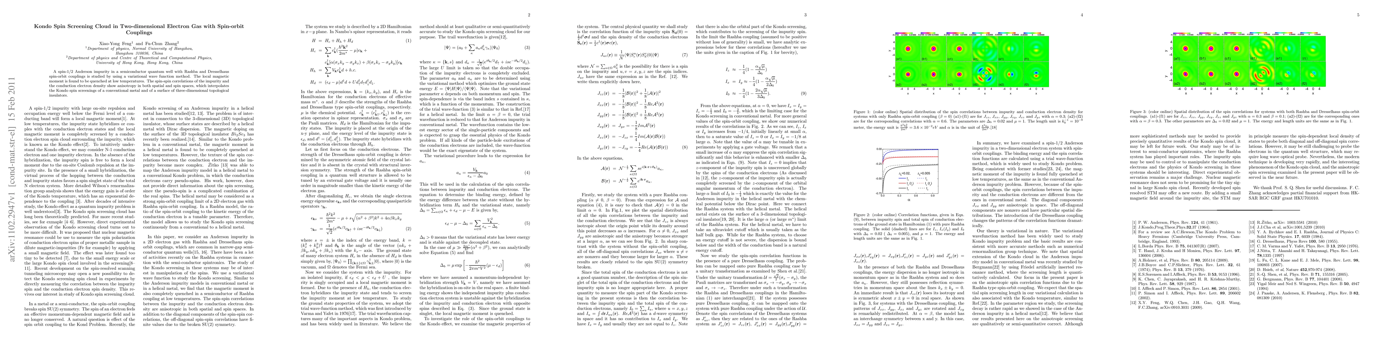 This paper investigates the Kondo effect in a two-dimensional electron gas with spin-orbit couplings, revealing that the local magnetic moment of a spin-1/2 impurity is quenched at low temperatures. The study finds anisotropic spin-spin correlations, bridging the Kondo screening behavior in conventional metals and topological insulators.