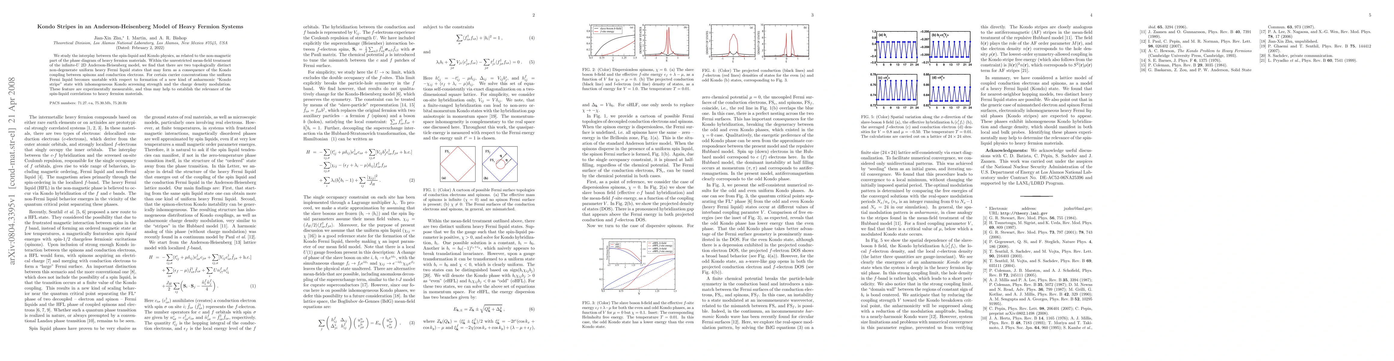 We study the interplay between the spin-liquid and Kondo physics, as related to the non-magnetic part of the phase diagram of heavy fermion materials. Within the unrestricted mean-field treatment of the infinite-$U$ 2D Anderson-Heisenberg model, we find that there are two topologically distinct non-degenerate uniform heavy Fermi liquid states that may form as a consequence of the Kondo coupling between spinons and conduction electrons. For certain carrier concentrations the uniform Fermi liquid becomes unstable with respect to formation of a new kind of anharmonic "Kondo stripe" state with inhomogeneous Kondo screening strength and the charge density modulation. These feature are experimentally measurable, and thus may help to establish the relevance of the spin-liquid correlations to heavy fermion materials.
