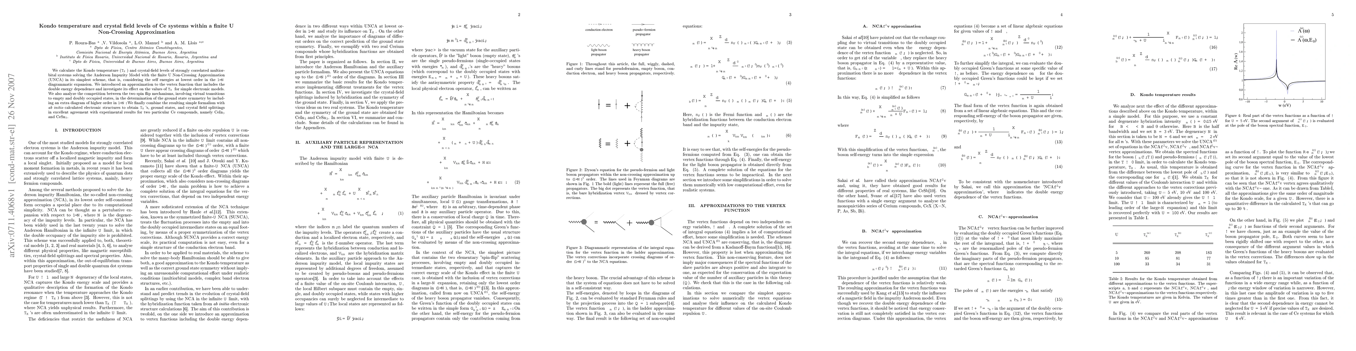 This paper calculates the Kondo temperature and crystal-field levels in Ce systems using the finite U Non-Crossing Approximation, finding good agreement with experimental results for CeIn$_3$ and CeSn$_3$. The study explores the effects of spin flip mechanisms and introduces an approximation for the vertex function to determine ground state symmetry.
