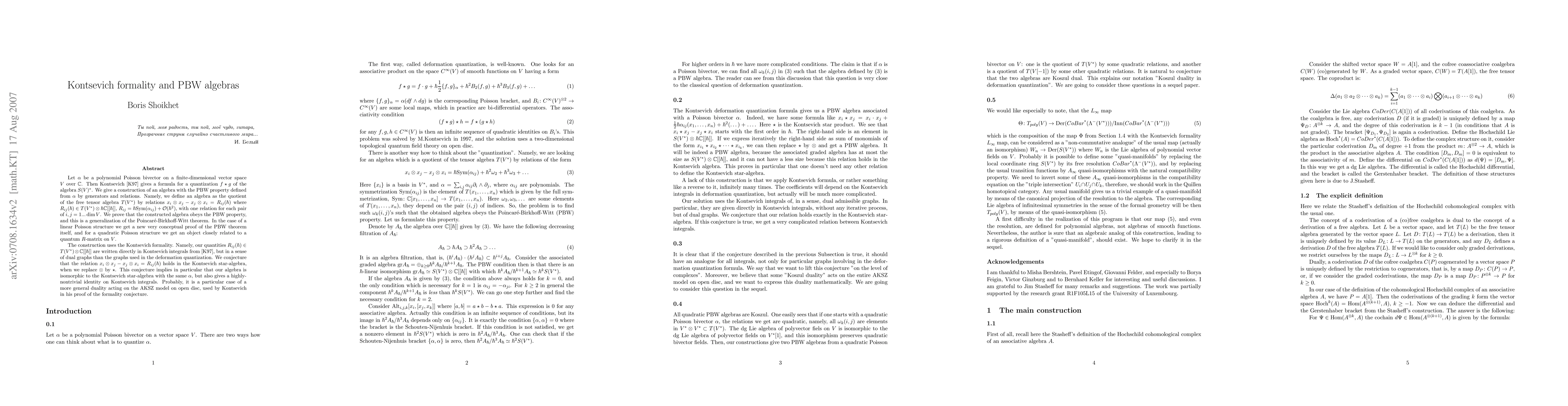 This paper is based on the author's paper "Koszul duality in deformation quantization, I", with some improvements. In particular, an Introduction is added, and the convergence of the spectral sequence in Lemma 2.1 is rigorously proven. Some informal discussion in Section 1.5 is added.