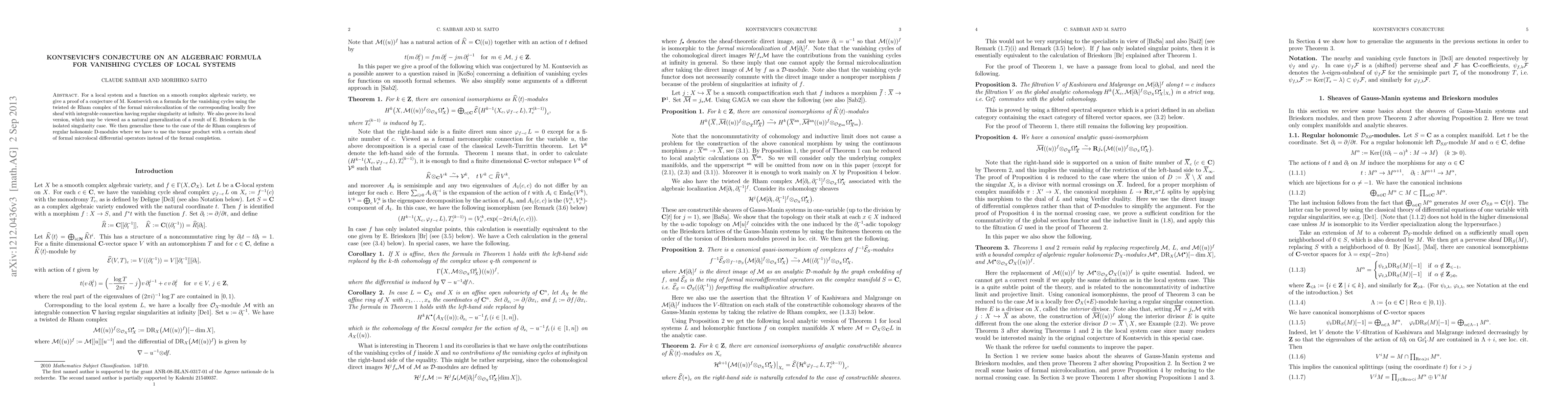 Summary: This paper proves Kontsevich's conjecture on a formula for vanishing cycles of local systems using the twisted de Rham complex and formal microlocalization. It also generalizes the result to de Rham complexes of regular holonomic D-modules, employing formal microlocal differential operators.