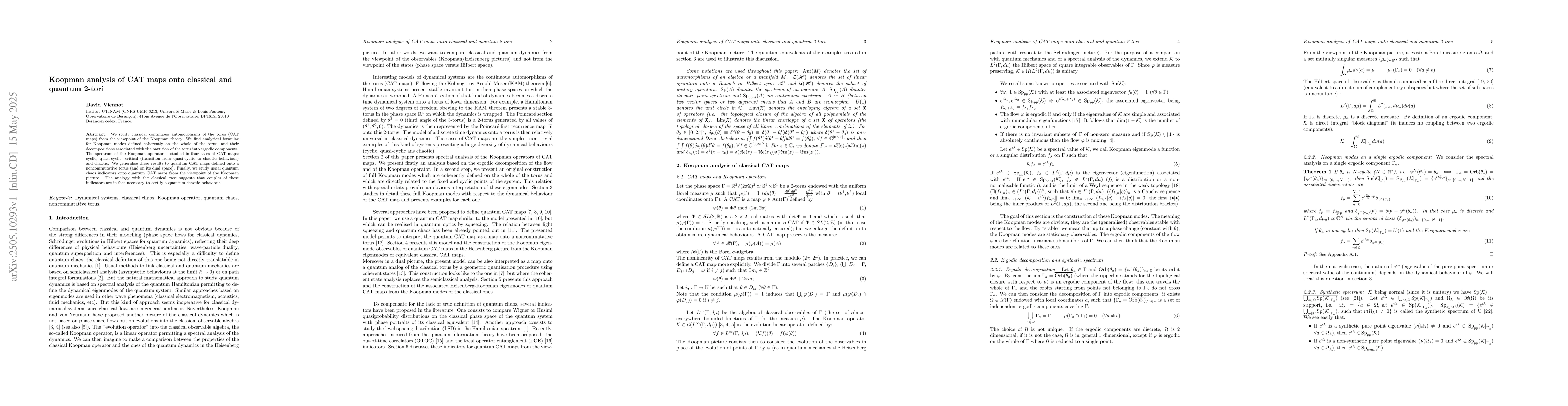 The derivation of analytical formulae for Koopman modes on CAT maps and their extension to quantum CAT maps on noncommutative tori.