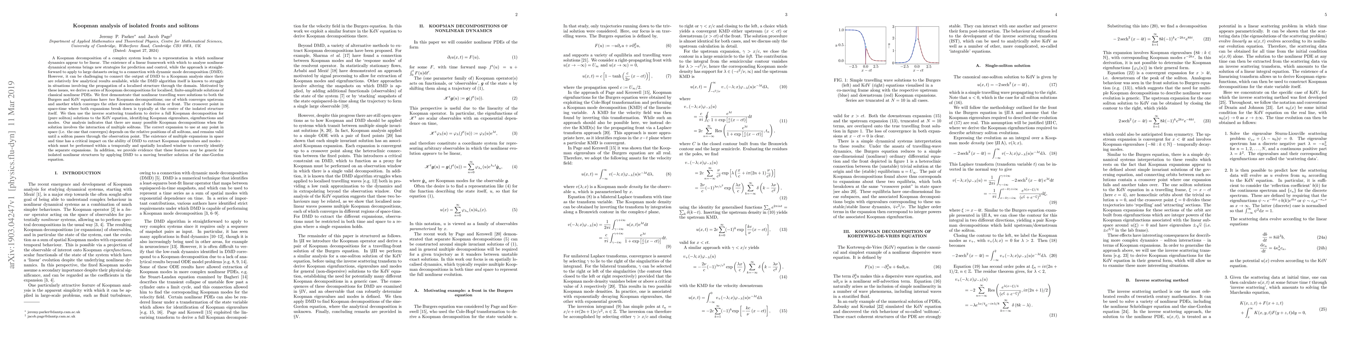 This paper explores the application of Koopman analysis to nonlinear PDEs, demonstrating that localized, finite-amplitude solutions like solitons have multiple convergent decompositions. It highlights the challenges in extracting Koopman modes using dynamic mode decomposition (DMD) and suggests that localized analysis windows are necessary to accurately identify the separate expansions.