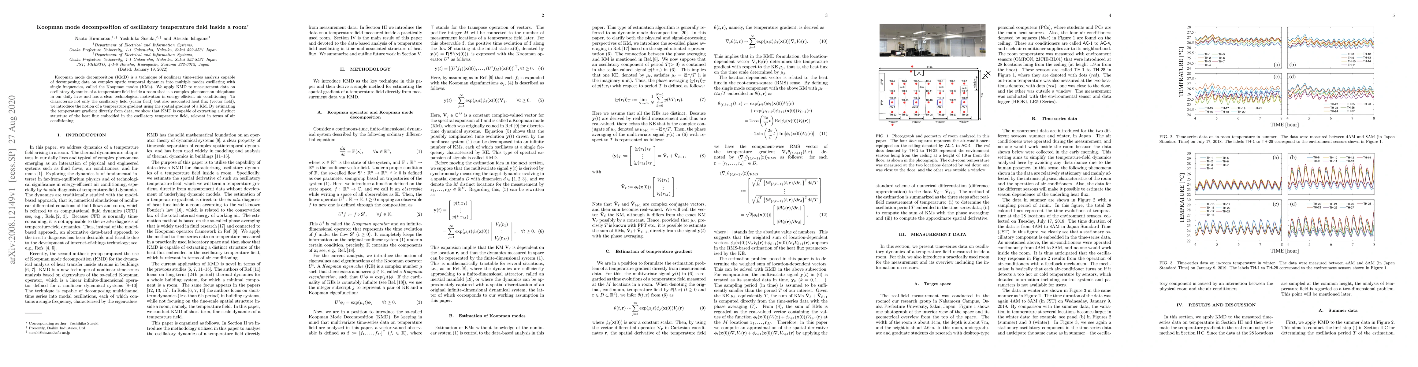 This paper applies Koopman mode decomposition to analyze oscillatory temperature dynamics in a room, revealing underlying structures in temperature and associated heat flux. The method extracts distinct heat flux patterns from temperature field data, aiding in the development of energy-efficient air conditioning systems.