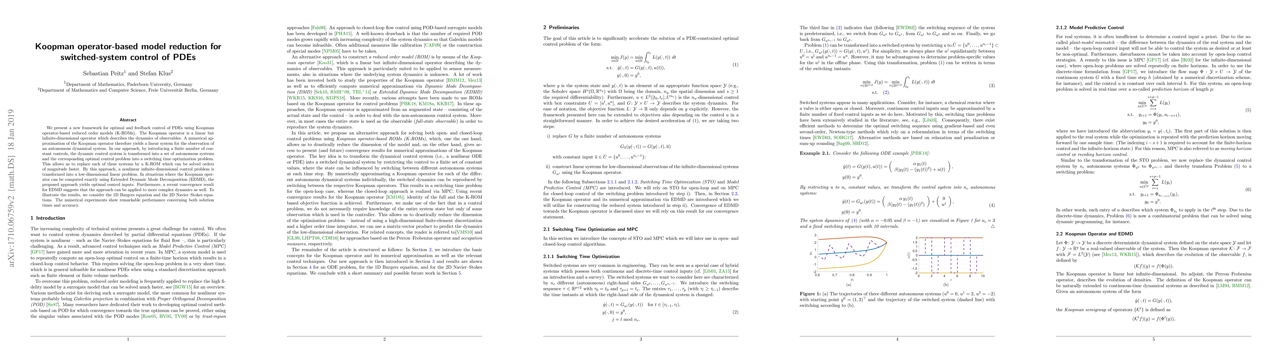 We present a new framework for optimal and feedback control of PDEs using Koopman operator-based reduced order models (K-ROMs). The Koopman operator is a linear but infinite-dimensional operator which describes the dynamics of observables. A numerical approximation of the Koopman operator therefore yields a linear system for the observation of an autonomous dynamical system. In our approach, by introducing a finite number of constant controls, the dynamic control system is transformed into a set of autonomous systems and the corresponding optimal control problem into a switching time optimization problem. This allows us to replace each of these systems by a K-ROM which can be solved orders of magnitude faster. By this approach, a nonlinear infinite-dimensional control problem is transformed into a low-dimensional linear problem. In situations where the Koopman operator can be computed exactly using Extended Dynamic Mode Decomposition (EDMD), the proposed approach yields optimal control inputs. Furthermore, a recent convergence result for EDMD suggests that the approach can be applied to more complex dynamics as well. To illustrate the results, we consider the 1D Burgers equation and the 2D Navier--Stokes equations. The numerical experiments show remarkable performance concerning both solution times and accuracy.