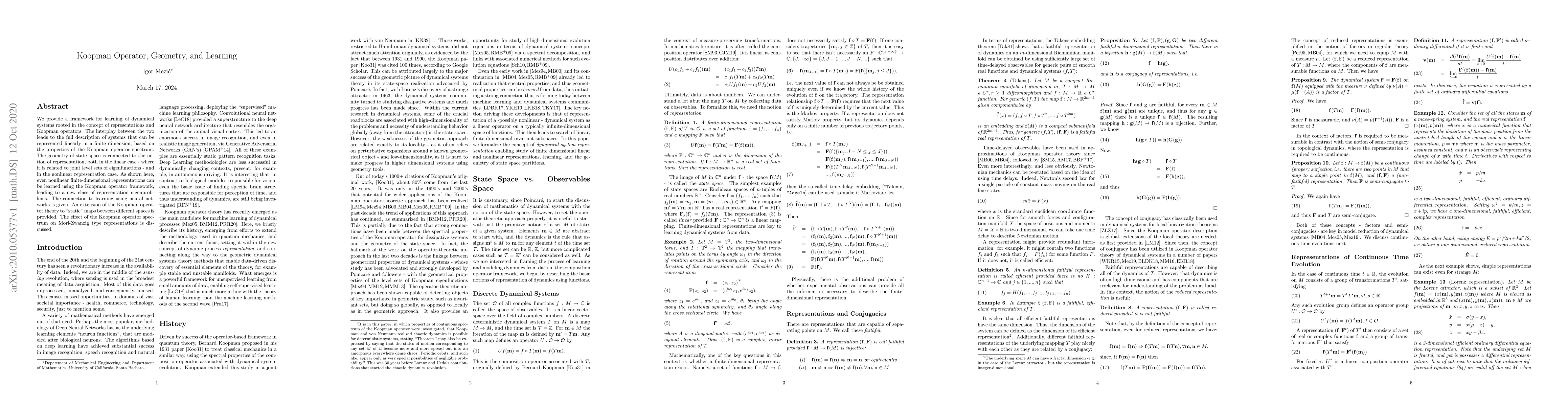 This paper develops a framework for learning dynamical systems using Koopman operators and representations, showing how the geometry of state space can be fully described by the Koopman operator spectrum. It also extends this framework to learn nonlinear representations and discusses its connection to neural network learning.