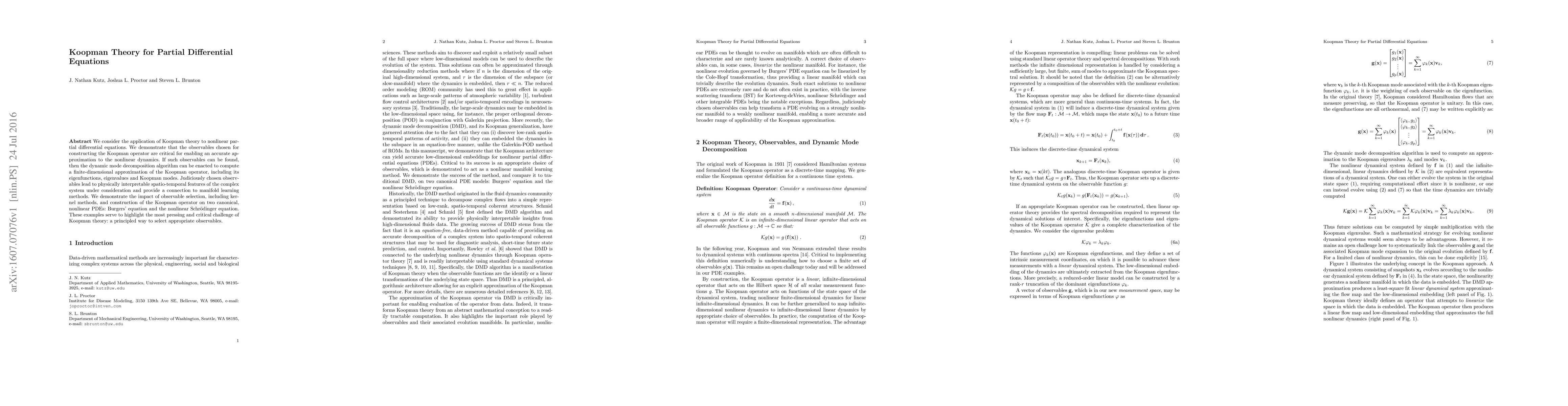 This paper explores the use of Koopman theory to approximate nonlinear dynamics in partial differential equations (PDEs) by constructing a Koopman operator from carefully chosen observables. The study emphasizes the importance of selecting appropriate observables to achieve accurate and interpretable approximations, demonstrating this through dynamic mode decomposition on Burgers' and nonlinear Schrödinger equations.