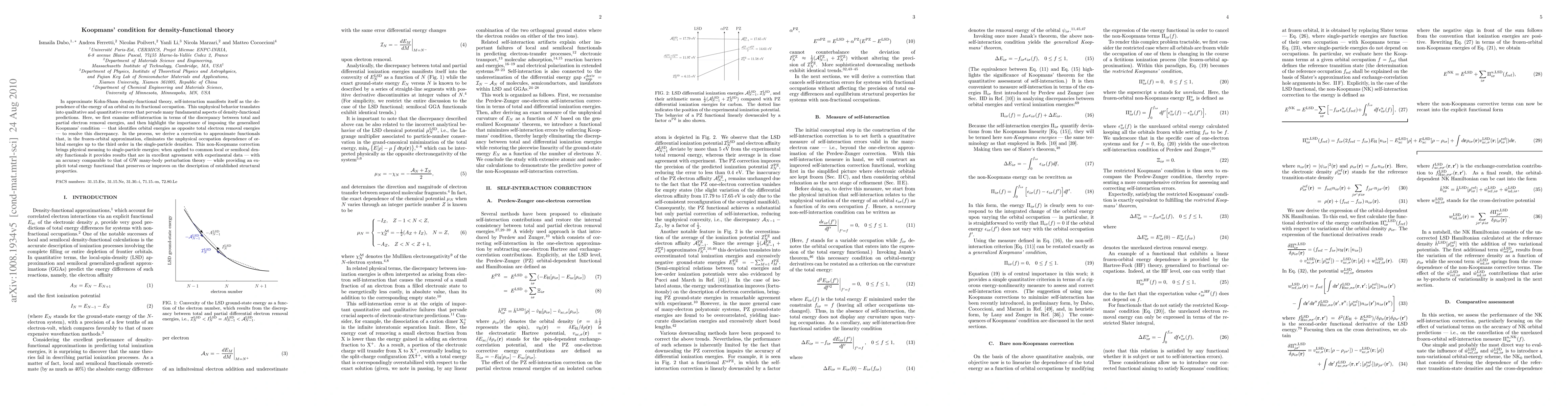 This paper addresses the issue of self-interaction in approximate Kohn-Sham density-functional theory, proposing a correction to eliminate unphysical occupation dependence of orbital energies. It introduces the generalized Koopmans' condition to resolve discrepancies in electron removal energies, leading to a correction that enhances the accuracy of functionals and aligns well with experimental data.