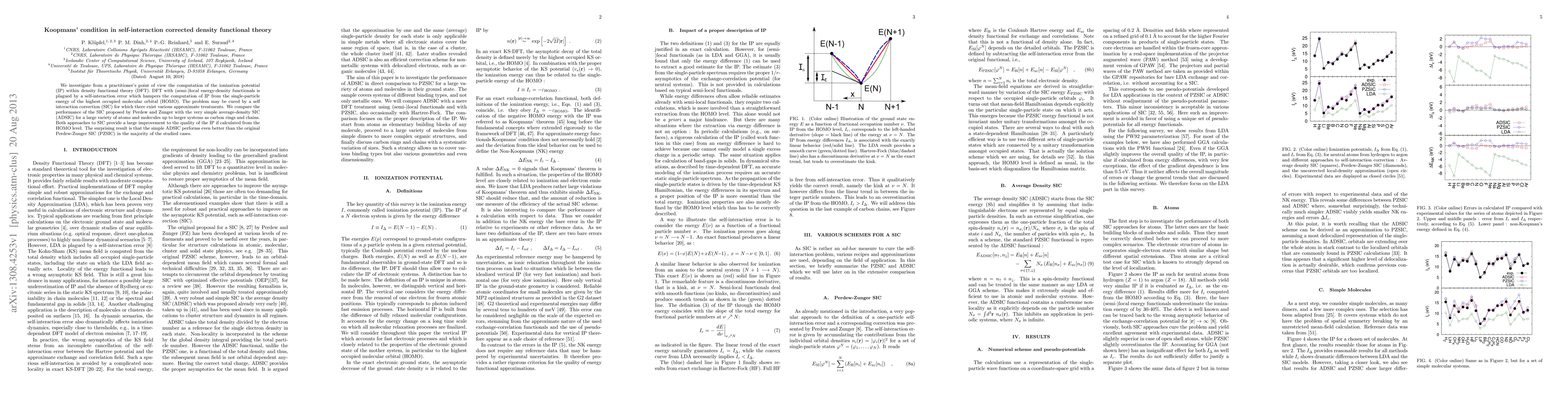 We investigate from a practitioner's point of view the computation of the ionization potential (IP) within density functional theory (DFT). DFT with (semi-)local energy-density functionals is plagued by a self-interaction error which hampers the computation of IP from the single-particle energy of the highest occupied molecular orbital (HOMO). The problem may be cured by a self interaction correction (SIC) for which there exist various approximate treatments. We compare the performance of the SIC proposed by Perdew and Zunger with the very simple average-density SIC (ADSIC) for a large variety of atoms and molecules up to larger systems as carbon rings and chains. Both approaches to SIC provide a large improvement to the quality of the IP if calculated from the HOMO level. The surprising result is that the simple ADSIC performs even better than the original Perdew-Zunger SIC (PZSIC) in the majority of the studied cases.