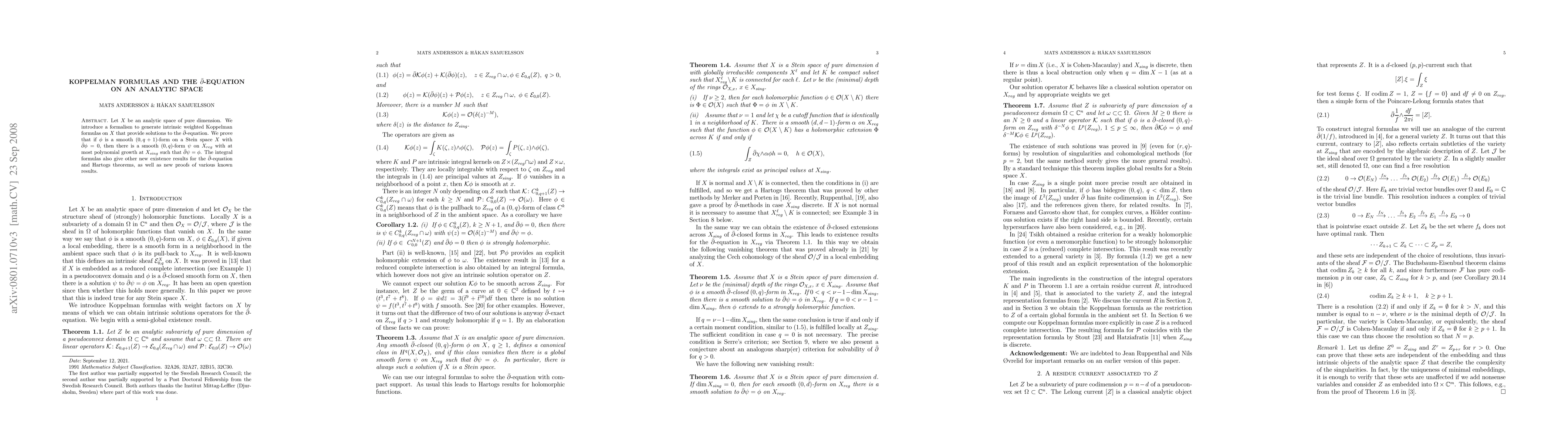 Let $X$ be an analytic space of pure dimension. We introduce a formalism to generate intrinsic weighted Koppelman formulas on $X$ that provide solutions to the $\dbar$-equation. We prove that if $\phi$ is a smooth $(0,q+1)$-form on a Stein space $X$ with $\dbar\phi=0$, then there is a smooth $(0,q)$-form $\psi$ on $X_{reg}$ with at most polynomial growth at $X_{sing}$ such that $\dbar\psi=\phi$. The integral formulas also give other new existence results for the $\dbar$-equation and Hartogs theorems, as well as new proofs of various known results.