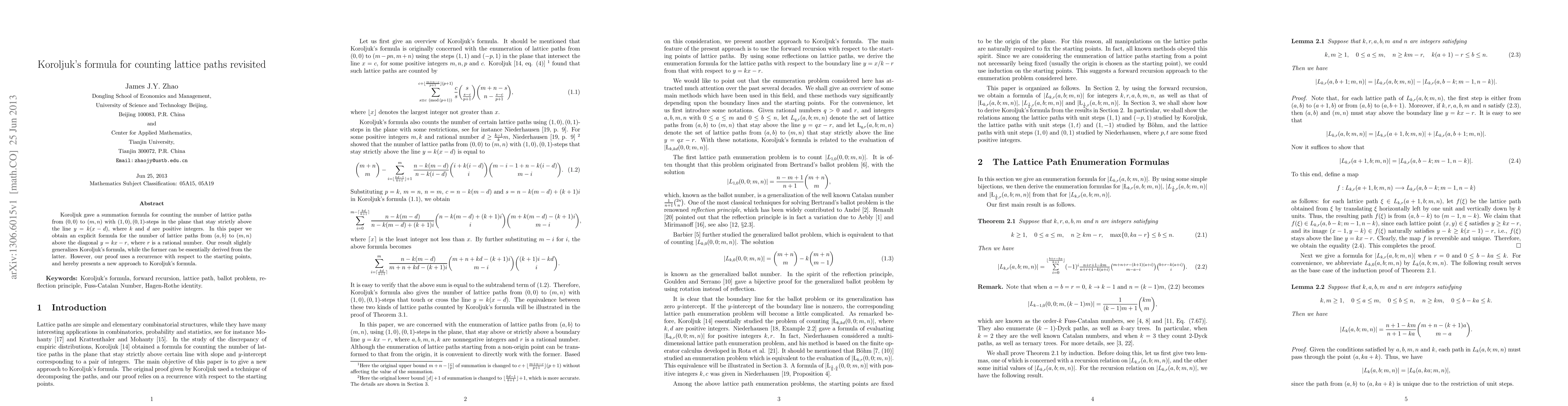This paper generalizes Koroljuk's formula for counting lattice paths that stay above a diagonal line, providing an explicit formula for paths starting from $(a,b)$ to $(m,n)$ above $y=kx-r$. The new approach uses a recurrence with respect to starting points, offering a fresh perspective on the original formula.