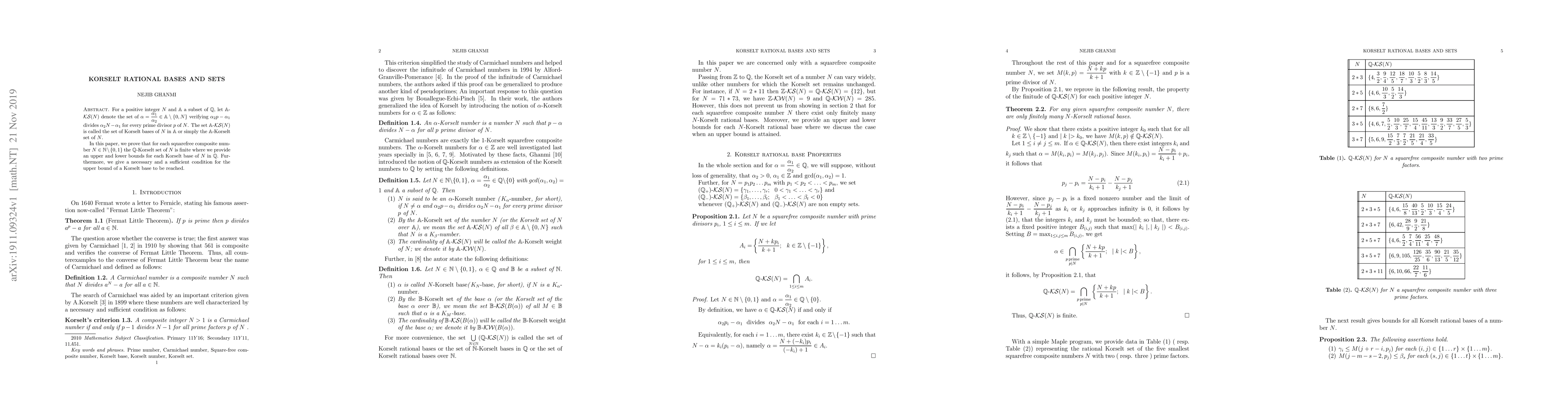 For a positive integer $N$ and $\mathbb{A}$ a subset of $\mathbb{Q}$, let $\mathbb{A}$-$\mathcal{KS}(N)$ denote the set of $\alpha=\dfrac{\alpha_{1}}{\alpha_{2}}\in \mathbb{A}\setminus \{0,N\}$ verifying $\alpha_{2}p-\alpha_{1}$ divides $\alpha_{2}N-\alpha_{1}$ for every prime divisor $p$ of $N$. The set $\mathbb{A}$-$\mathcal{KS}(N)$ is called the set of Korselt bases of $N$ in $\mathbb{A}$ or simply the $\mathbb{A}$-Korselt set of $N$. In this paper, we prove that for each squarefree composite number $N\in\mathbb{N}\setminus\{0,1\}$ the $\mathbb{Q}$-Korselt set of $N$ is finite where we provide an upper and lower bounds for each Korselt base of $N$ in $\mathbb{Q}$. Furthermore, we give a necessary and a sufficient condition for the upper bound of a Korselt base to be reached.