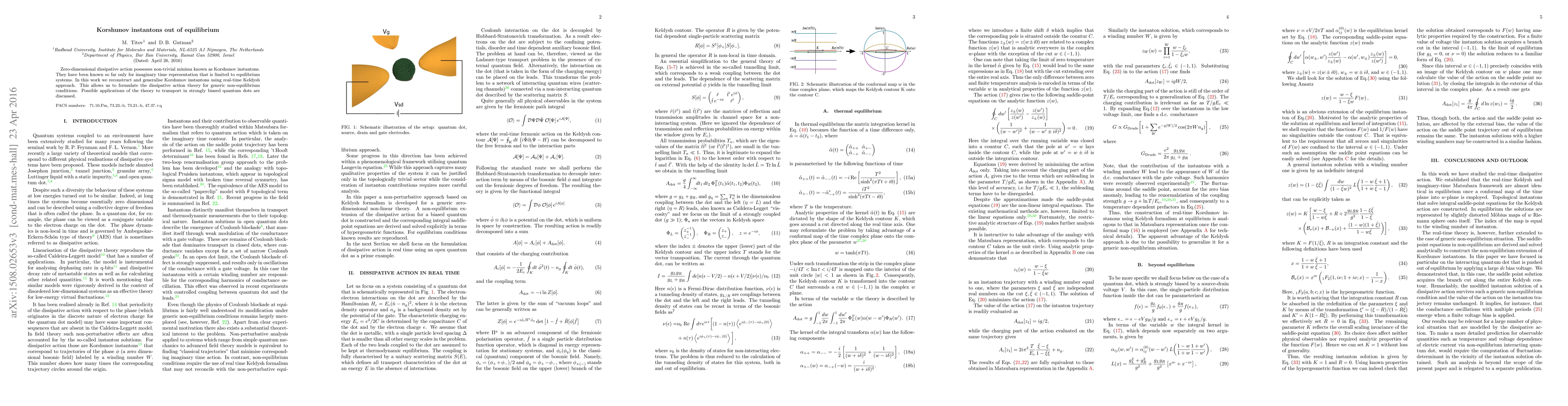 This paper reconstructs Korshunov instantons using the real-time Keldysh formalism, generalizing them from equilibrium to non-equilibrium systems, and explores potential applications to transport phenomena in strongly biased quantum dots.