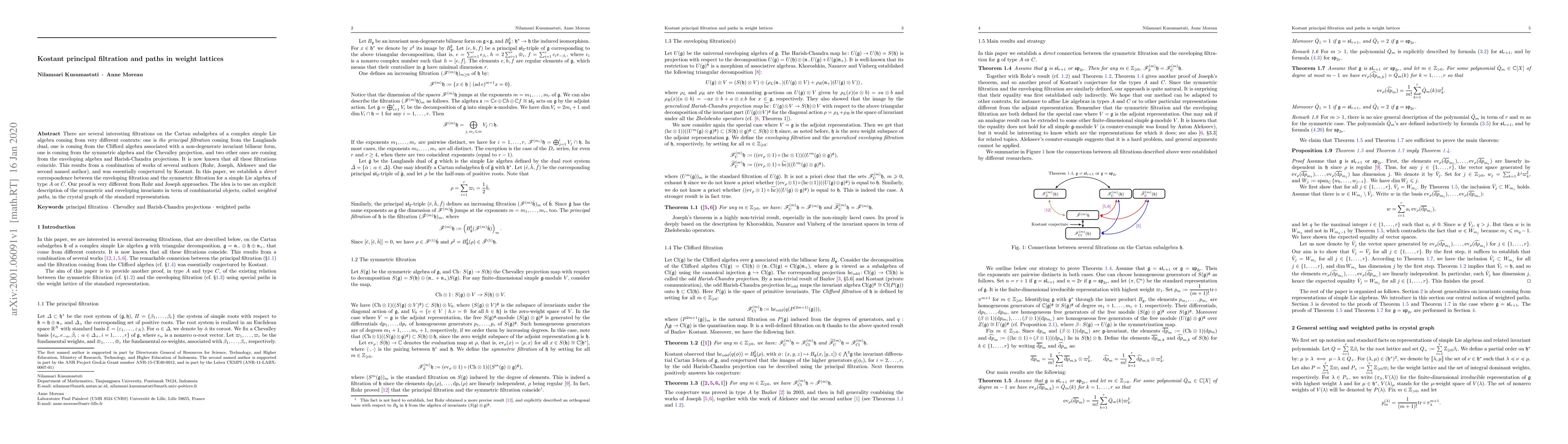There are several interesting filtrations on the Cartan subalgebra of a complex simple Lie algebra coming from very different contexts: one is the principal filtration coming from the Langlands dual, one is coming from the Clifford algebra associated with a non-degenerate invariant bilinear form, one is coming from the symmetric algebra and the Chevalley projection, and two other ones are coming from the enveloping algebra and Harish-Chandra projections. It is now known that all these filtrations coincide. This results from a combination of works of several authors (Rohr, Joseph, Alekseev and the second named author), and was essentially conjectured by Kostant. In this paper, we establish a direct correspondence between the enveloping filtration and the symmetric filtration for a simple Lie algebra of type A or C. Our proof is very different from Rohr and Joseph approaches. The idea is to use an explicit description of the symmetric and enveloping invariants in term of combinatorial objects, called weighted paths, in the crystal graph of the standard representation.