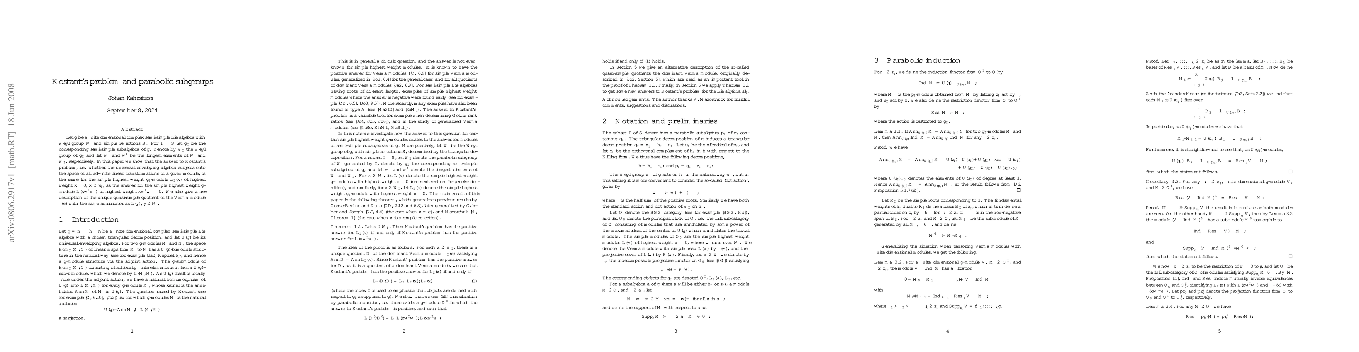 Let $\frak g$ be a finite dimensional complex semi-simple Lie algebra with Weyl group $W$ and simple reflections $S$. For $I\subseteq S$ let $\frak g_I$ be the corresponding semi-simple subalgebra of $\frak g$. Denote by $W_I$ the Weyl group of $\frak g_I$ and let $w_o$ and $w^I_o$ be the longest elements of $W$ and $W_I$, respectively. In this paper we show that the answer to Kostant's problem, i.e. whether the universal enveloping algebra surjects onto the space of all ad-finite linear transformations of a given module, is the same for the simple highest weight $\frak g_I$-module $L_I(x)$ of highest weight $x\cdot 0$, $x\in W_I$, as the answer for the simple highest weight $\frak g$-module $L(x w^I_o w_o)$ of highest weight $(x w^I_o w_o)\cdot 0$. We also give a new description of the unique quasi-simple quotient of the Verma module $\Delta(e)$ with the same annihilator as $L(y)$, $y\in W$.