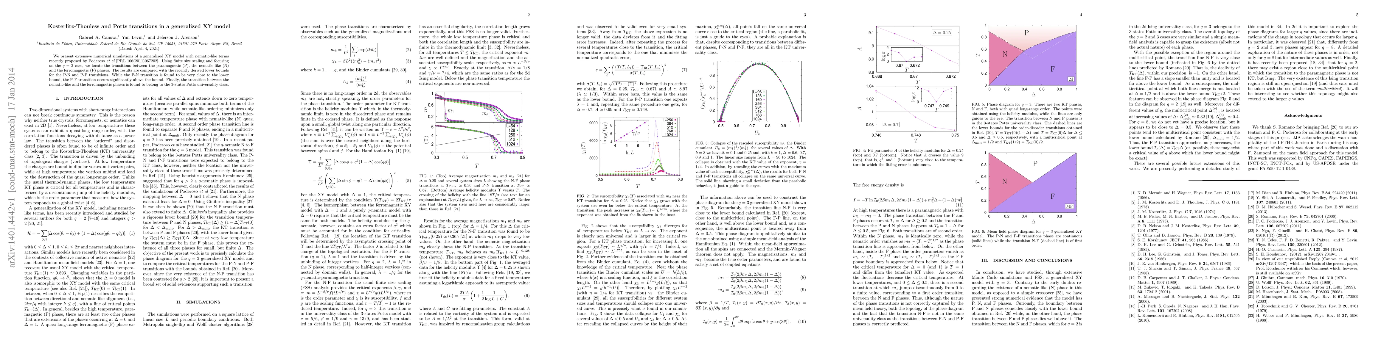 This paper investigates a generalized XY model with nematic-like terms, identifying Kosterlitz-Thouless and Potts transitions through numerical simulations. The P-N transition aligns closely with theoretical lower bounds, while the P-F transition is significantly above it, and the N-F transition falls within the 3-states Potts universality class.