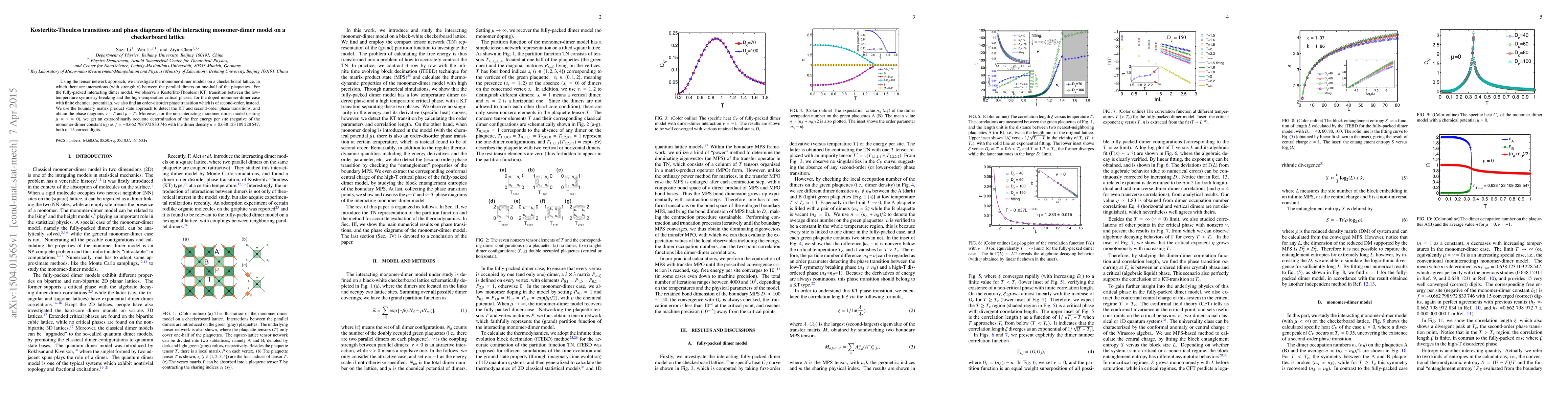 This paper investigates the Kosterlitz-Thouless transition in the interacting monomer-dimer model on a checkerboard lattice using tensor network methods. It finds a KT transition for the fully packed dimer model and a second-order phase transition for the doped monomer-dimer case, providing precise phase diagrams and accurate free energy determination for the noninteracting model.