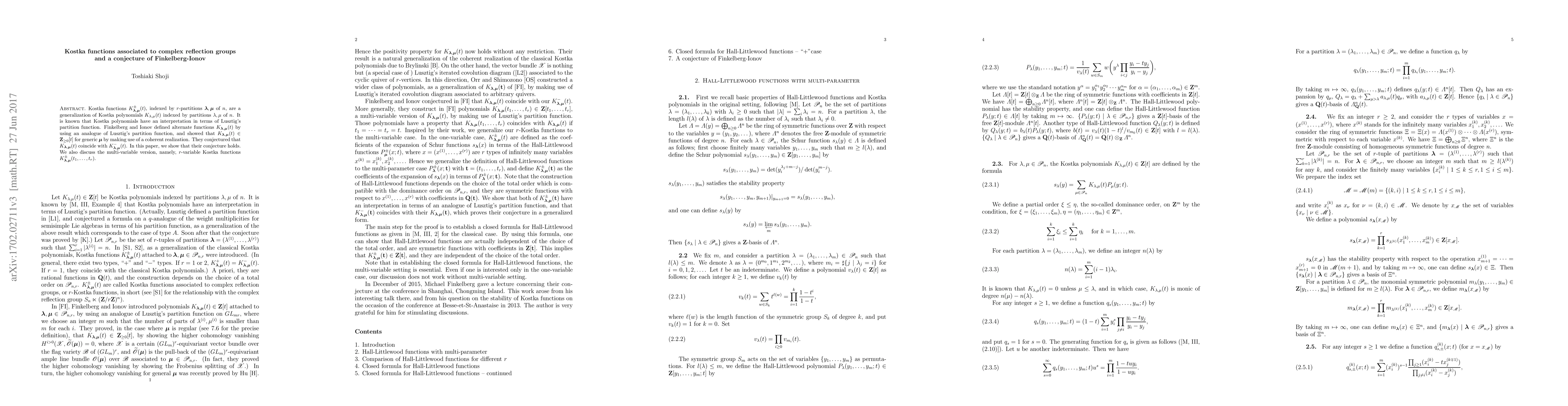 This paper confirms the conjecture by Finkelberg and Ionov that their defined functions $K_{\lambda,\mu}(t)$ coincide with the generalized Kostka functions $K^-_{\lambda,\mu}(t)$ associated with complex reflection groups. It also explores a multi-variable extension of these Kostka functions.