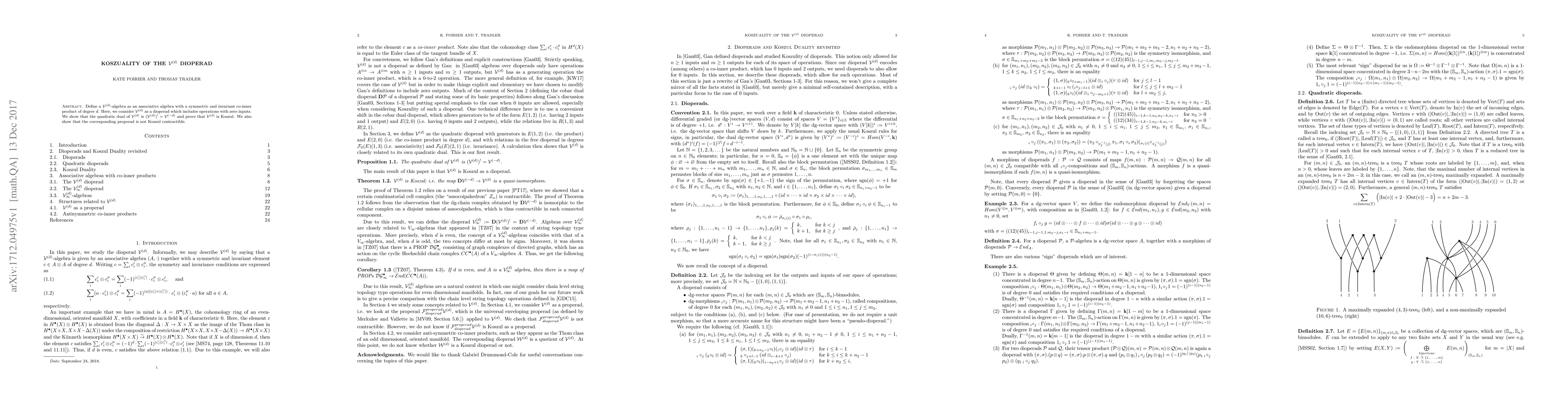 Define a $\mathcal V^{(d)}$-algebra as an associative algebra with a symmetric and invariant co-inner product of degree $d$. Here, we consider $\mathcal V^{(d)}$ as a dioperad which includes operations with zero inputs. We show that the quadratic dual of $\mathcal V^{(d)}$ is $(\mathcal V^{(d)})^!=\mathcal V^{(-d)}$ and prove that $\mathcal V^{(d)}$ is Koszul. We also show that the corresponding properad is not Koszul contractible.