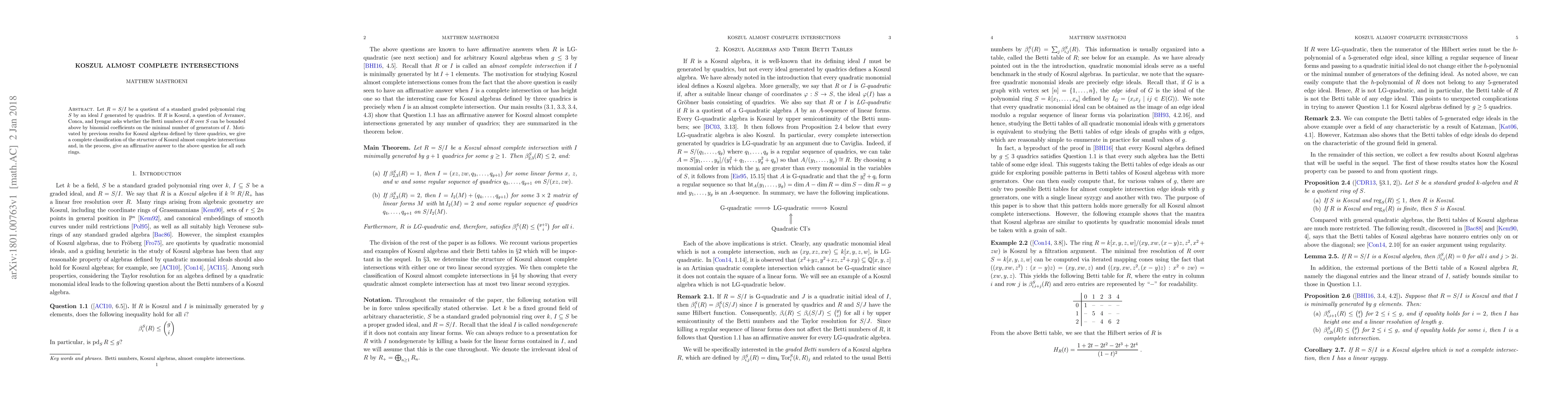 This paper classifies Koszul almost complete intersections, providing an affirmative answer to the question of whether their Betti numbers can be bounded by binomial coefficients based on the number of quadrics generating their defining ideals. This resolves a query posed by Avramov, Conca, and Iyengar.