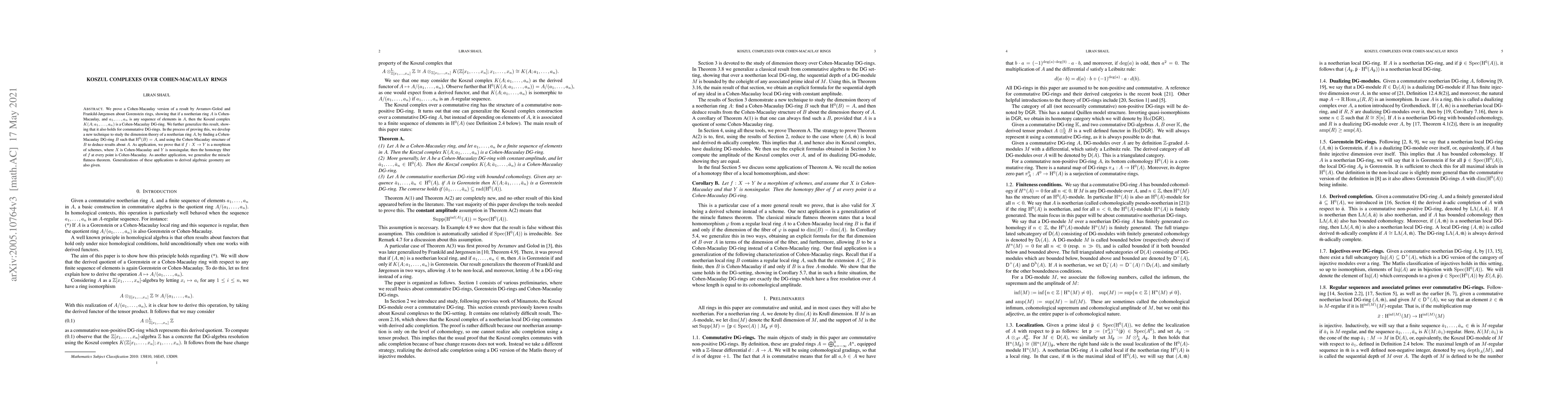 This paper proves a Cohen-Macaulay version of a result regarding Koszul complexes over Gorenstein rings, showing that for a Cohen-Macaulay noetherian ring $A$, the Koszul complex $K(A;a_1,\dots,a_n)$ is a Cohen-Macaulay DG-ring. It further applies this result to schemes and generalizes the miracle flatness theorem in derived algebraic geometry.
