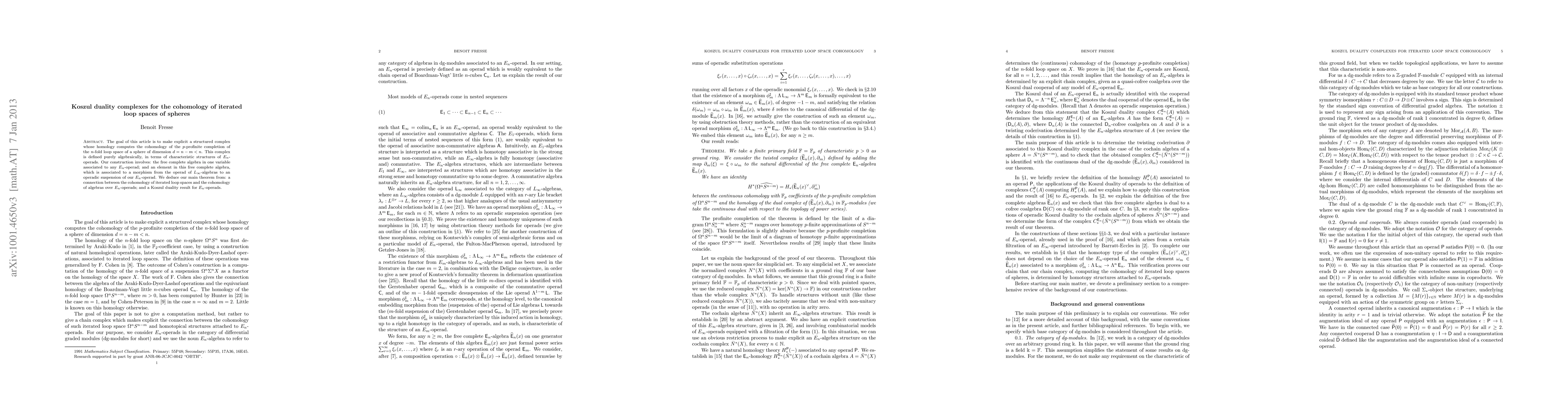 This paper constructs an algebraic complex whose homology computes the cohomology of the p-profinite completion of n-fold loop spaces of spheres, leveraging E_n-operads and Koszul duality. The construction utilizes the free complete algebra in one variable and an associated L-infinity morphism.