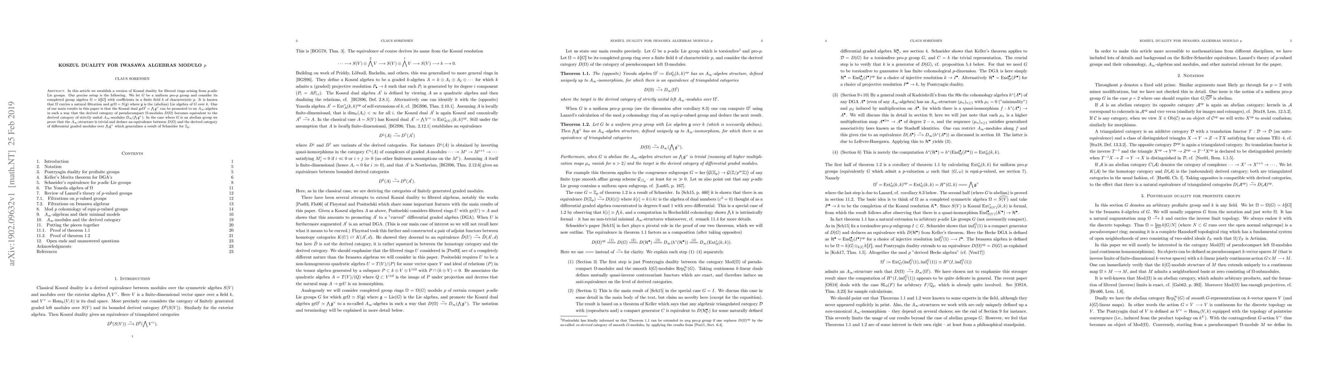 This paper establishes Koszul duality for the completed group algebra of a uniform pro-$p$ group over a finite field of characteristic $p$, showing that the derived category of pseudocompact modules corresponds to the derived category of $A_{\infty}$-modules. For abelian groups, it demonstrates that the $A_{\infty}$-structure is trivial, leading to an equivalence with differential graded modules.