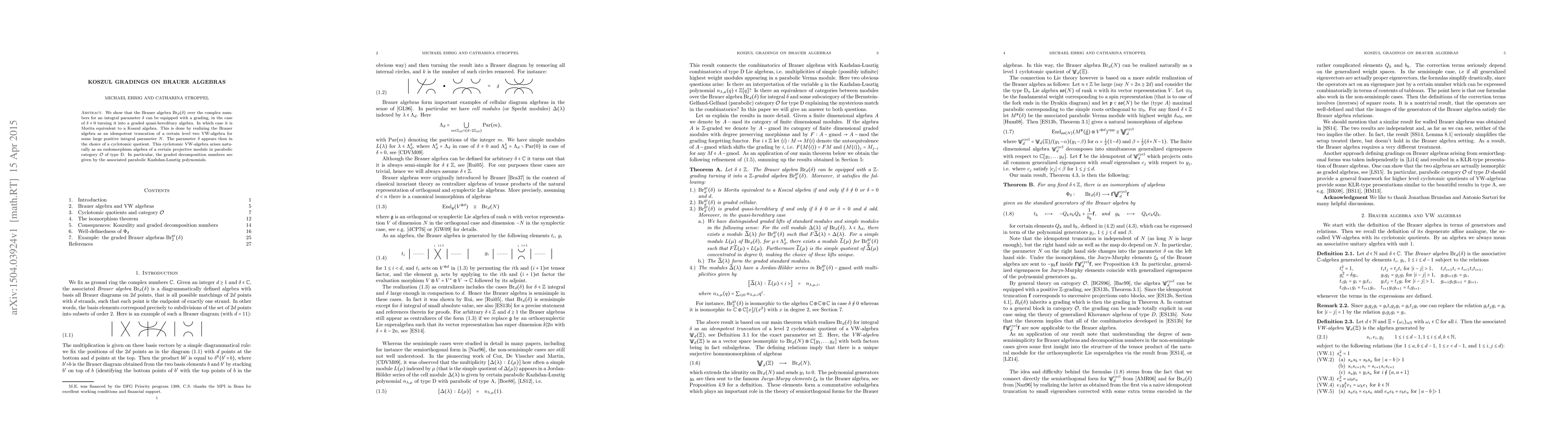 We show that the Brauer algebra over the complex numbers for an integral parameter delta can be equipped with a grading, in the case of delta being non-zero turning it into a graded quasi-hereditary algebra. In which case it is Morita equivalent to a Koszul algebra. This is done by realizing the Brauer algebra as an idempotent truncation of a certain level two VW-algebra for some large positive integral parameter N. The parameter delta appears then in the choice of a cyclotomic quotient. This cyclotomic VW-algebra arises naturally as an endomorphism algebra of a certain projective module in parabolic category O for an even special orthogonal Lie algebra. In particular, the graded decomposition numbers are given by the associated parabolic Kazhdan-Lusztig polynomials.