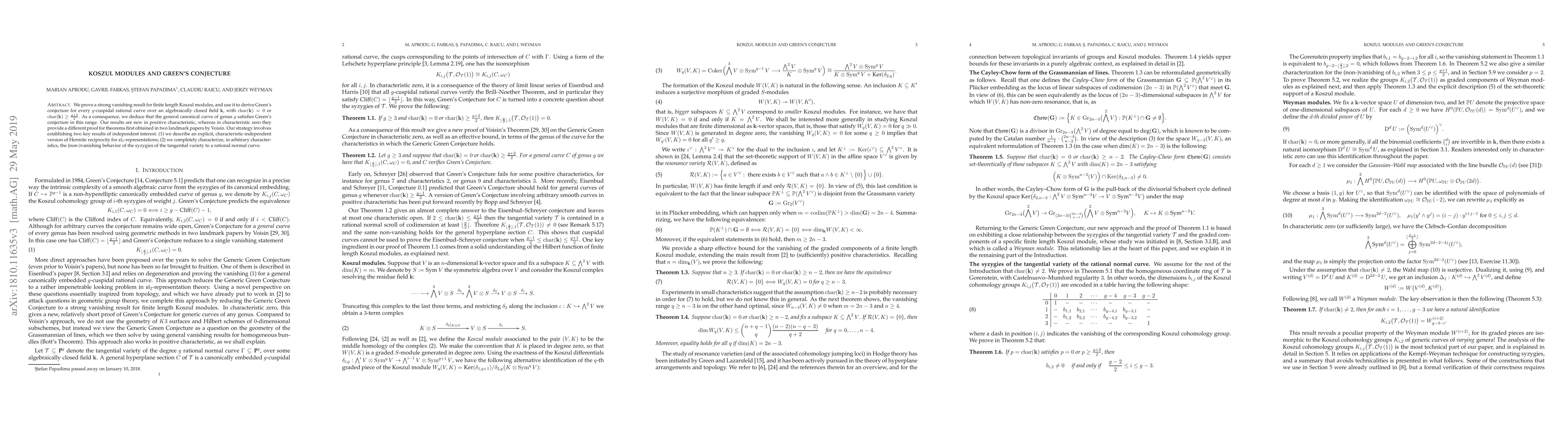 We prove a strong vanishing result for finite length Koszul modules, and use it to derive Green's conjecture for every g-cuspidal rational curve over an algebraically closed field k with char(k) = 0 or char(k) >= (g+2)/2. As a consequence, we deduce that the general canonical curve of genus g satisfies Green's conjecture in this range. Our results are new in positive characteristic, whereas in characteristic zero they provide a different proof for theorems first obtained in two landmark papers by Voisin. Our strategy involves establishing two key results of independent interest: (1) we describe an explicit, characteristic-independent version of Hermite reciprocity for sl_2-representations; (2) we completely characterize, in arbitrary characteristics, the (non-)vanishing behavior of the syzygies of the tangential variety to a rational normal curve.