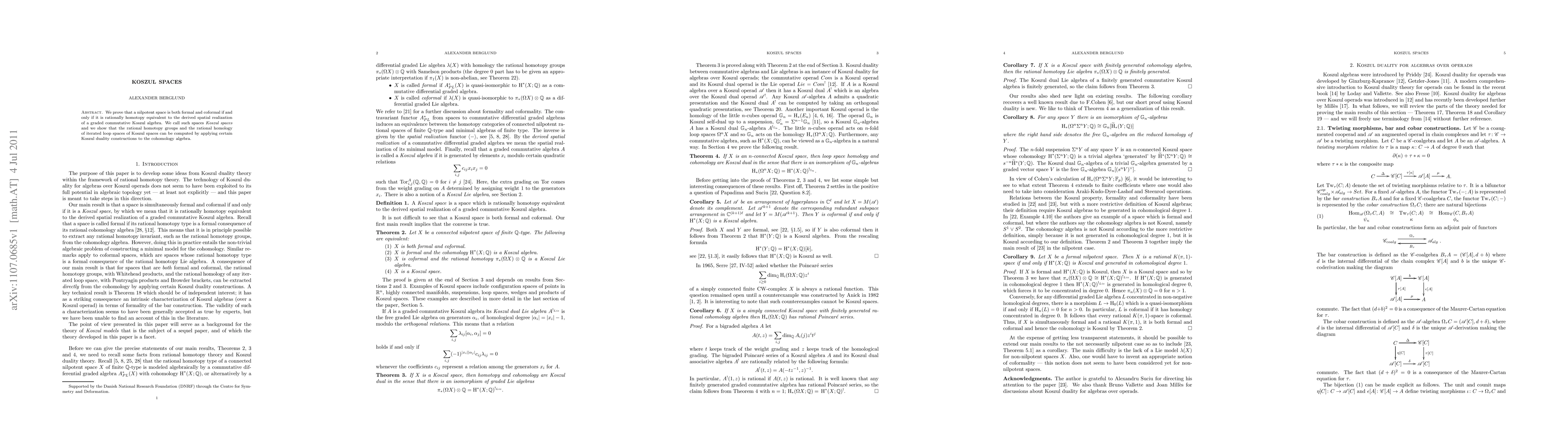 A nilpotent space is defined as a Koszul space if it is both formal and coformal, and this equivalence implies its rational homotopy equivalence to the derived spatial realization of a graded commutative Koszul algebra. The rational homotopy groups and homology of its iterated loop spaces can be computed using Koszul duality on its cohomology algebra.