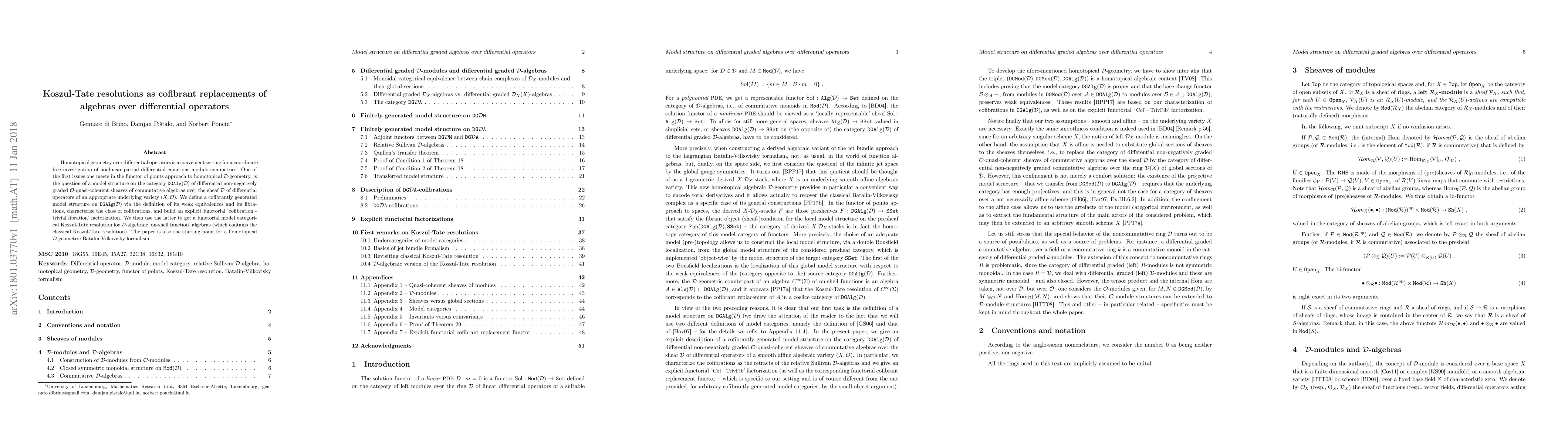 Researchers developed a model structure for differential operator algebras, providing a framework for studying nonlinear partial differential equations modulo symmetries, and introduced the concept of Koszul-Tate resolutions as cofibrant replacements.