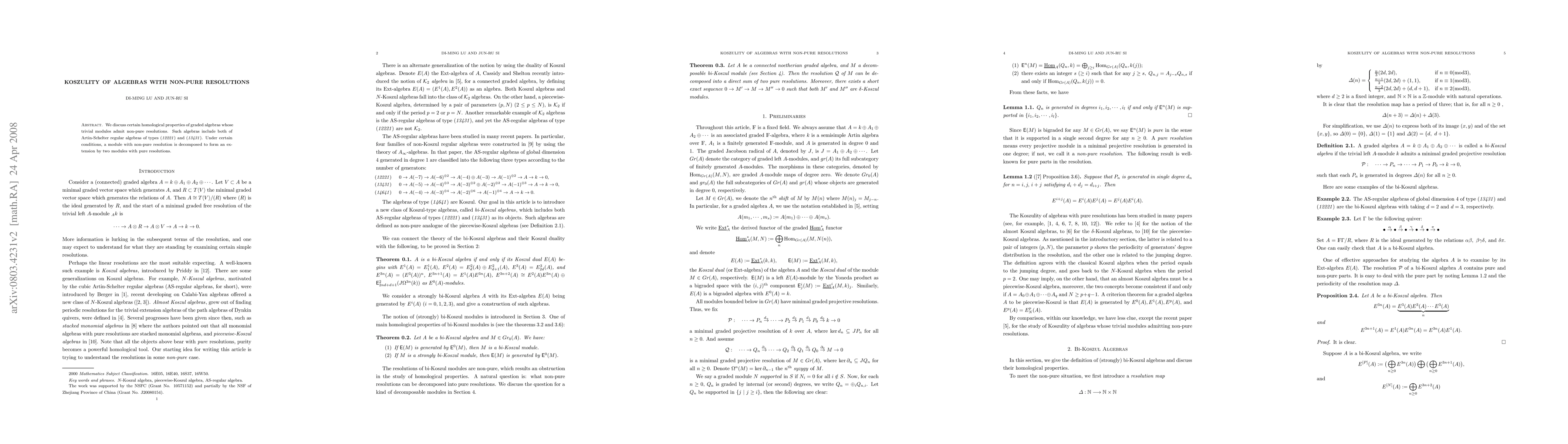 This paper explores the homological properties of graded algebras with non-pure resolutions, focusing on Artin-Schelter regular algebras of types (12221) and (13431). It reveals that under specific conditions, modules with non-pure resolutions can be decomposed into extensions by modules with pure resolutions.