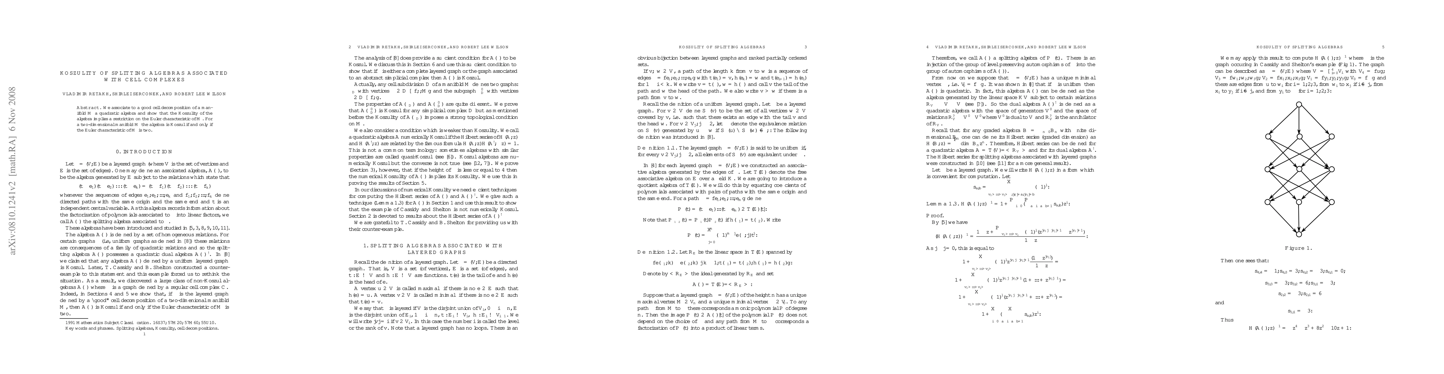We associate to a good cell decomposition of a manifold M a quadratic algebra and show that the Koszulity of the algebra implies a restriction on the Euler characteristic of M. For a two-dimensional manifold M the algebra is Koszul if and only if the Euler characteristic of M is two.