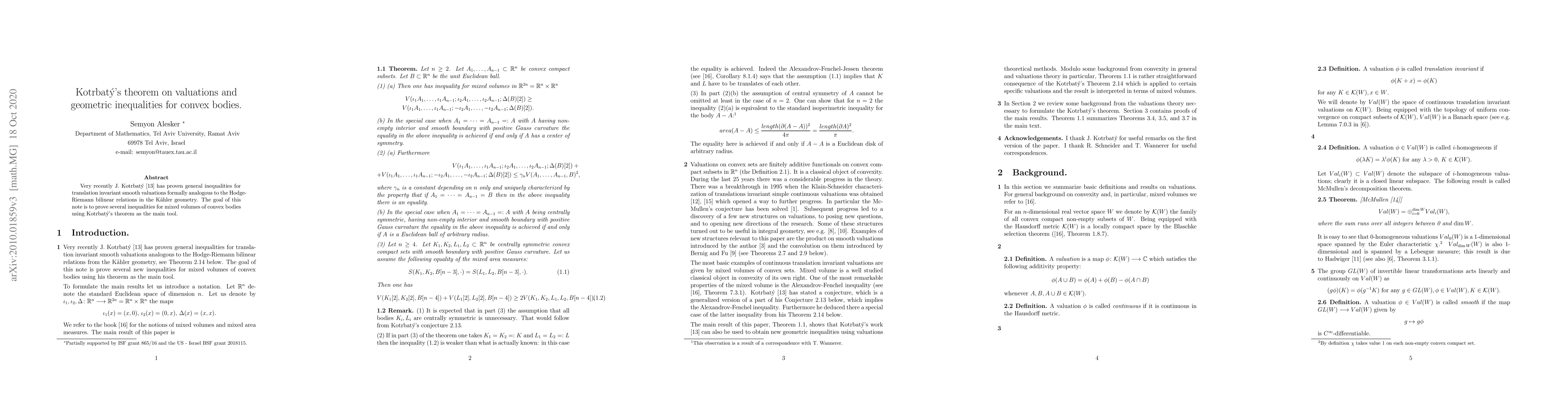 Summary: Kotrbaty's theorem extends Hodge-Riemann bilinear relations to translation invariant smooth valuations, and this paper applies the theorem to derive new geometric inequalities for mixed volumes of convex bodies.