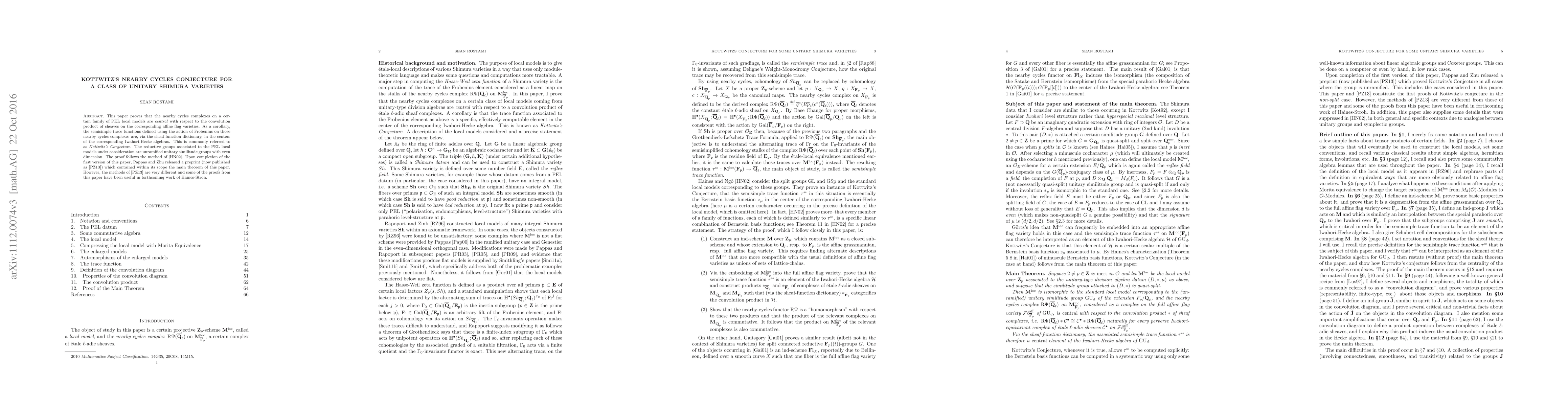 Researchers prove Kottwitz's nearby cycles conjecture for a class of unitary Shimura varieties, showing that central sheaves play a key role in the convolution product of sheaves on corresponding affine flag varieties.