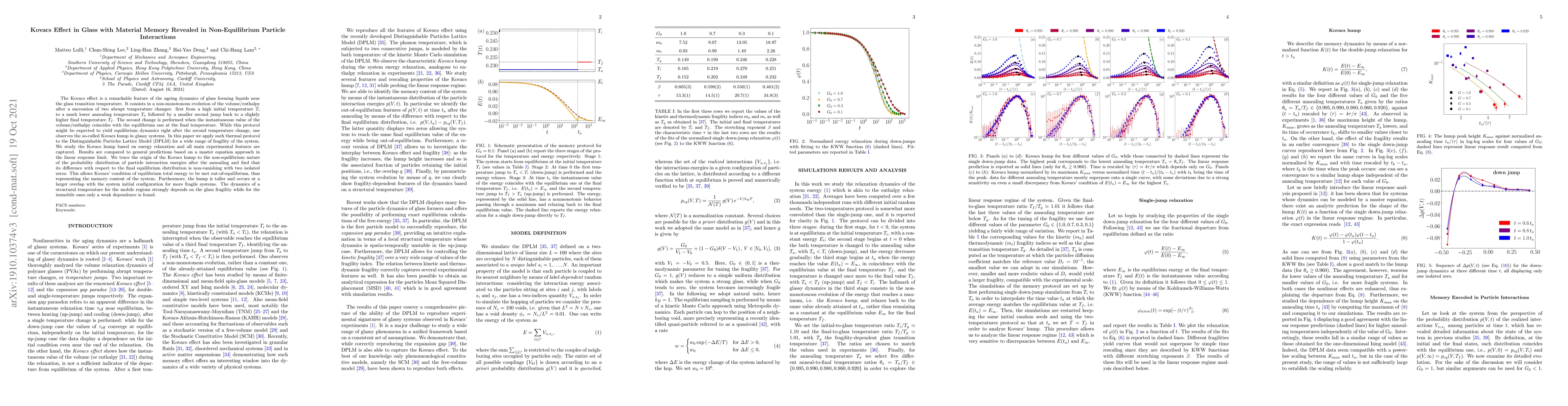 This paper investigates the Kovacs effect in glassy systems using the Distinguishable Particles Lattice Model, revealing that the Kovacs hump arises from the non-equilibrium nature of particle interaction energies. The study finds that the hump's height and occurrence correlate with the system's fragility, indicating memory effects in the material's response to temperature changes.