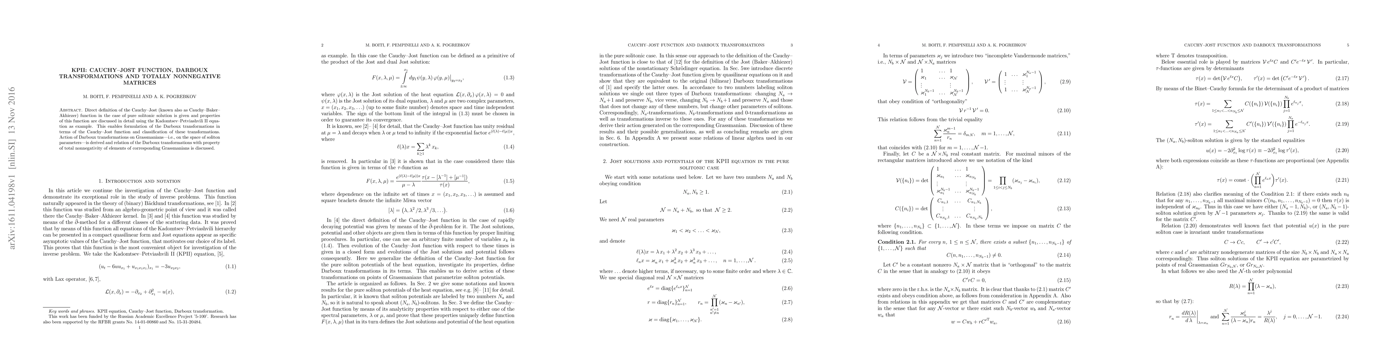 Direct definition of the Cauchy-Jost (known also as Cauchy-Baker-Akhiezer) function in the case of pure solitonic solution is given and properties of this function are discussed in detail using the Kadomtsev-Petviashvili II equation as example. This enables formulation of the Darboux transformations in terms of the Cauchy-Jost function and classification of these transformations. Action of Darboux transformations on Grassmanians-i.e., on the space of soliton parameters-is derived and relation of the Darboux transformations with property of total nonnegativity of elements of corresponding Grassmanians is discussed.