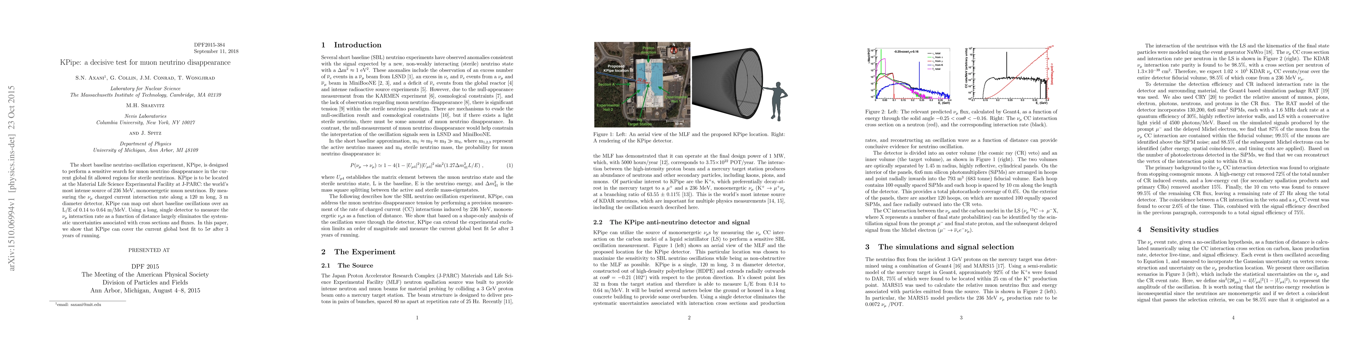 KPipe, a short baseline neutrino experiment at J-PARC, aims to detect muon neutrino disappearance in the context of sterile neutrinos. Utilizing a long, single detector, it seeks to minimize systematic uncertainties and can cover the current global best fit for sterile neutrinos within 3 years of operation.