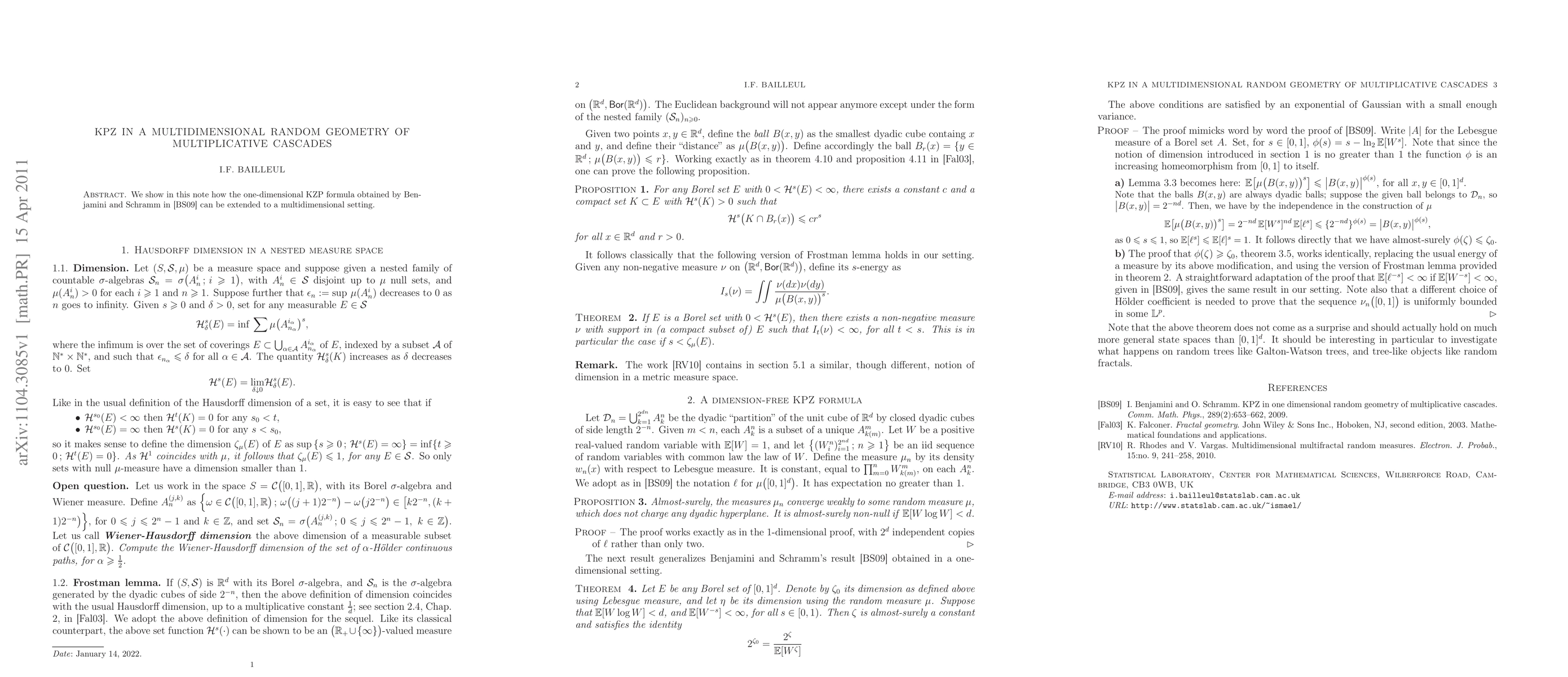 We show in this note how the one-dimensional KZP formula obtained by Benjamini and Schramm can be extended to a multidimensional setting.