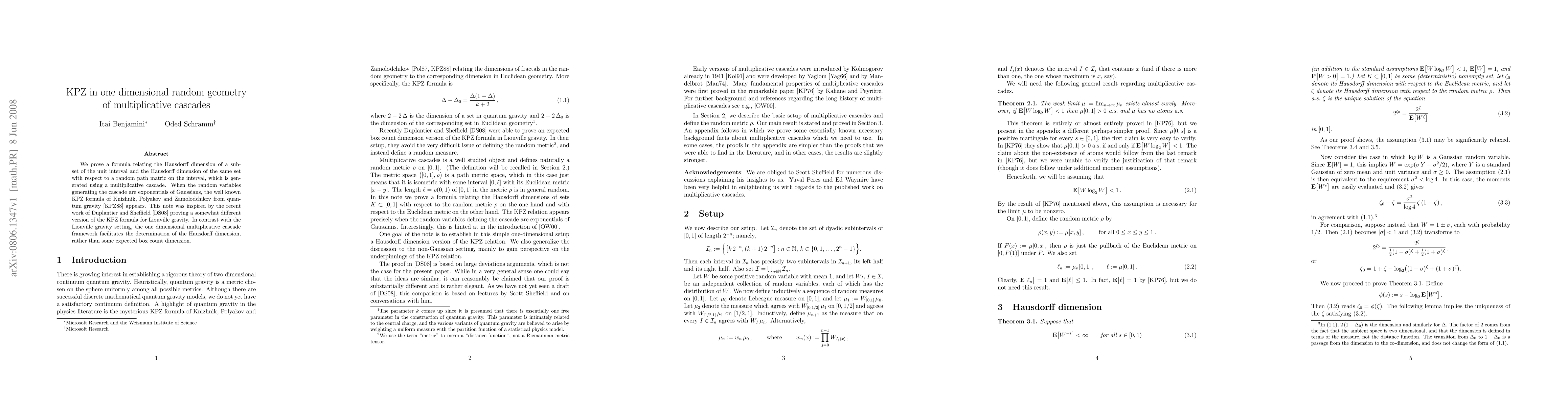 The paper presents a novel approach to calculating Hausdorff dimensions in the context of multiplicative cascades, leading to the KPZ formula under certain conditions.