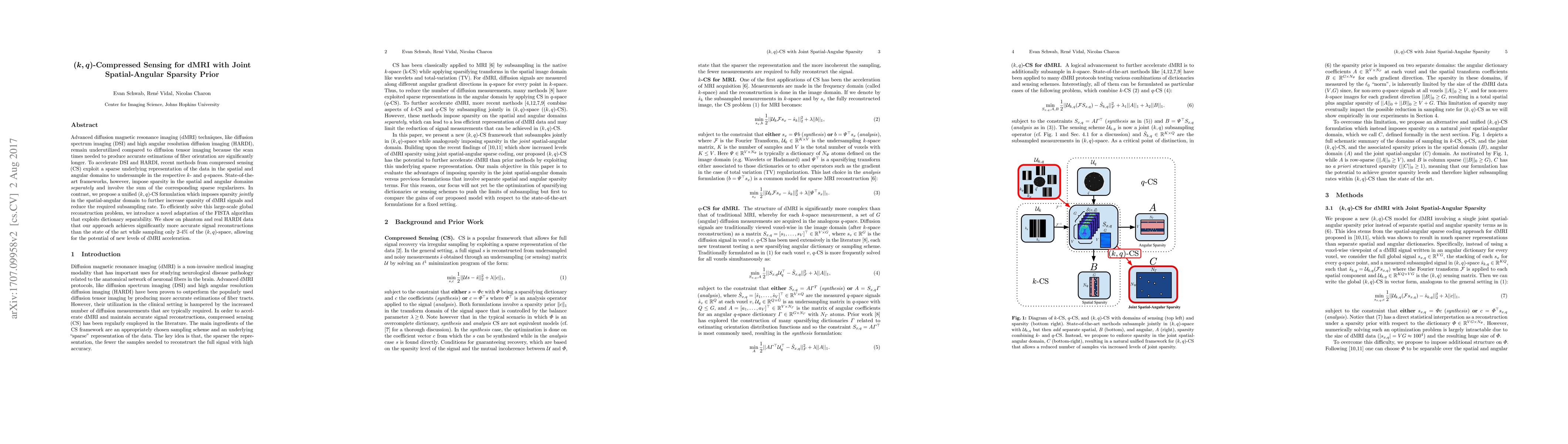 Advanced diffusion magnetic resonance imaging (dMRI) techniques, like diffusion spectrum imaging (DSI) and high angular resolution diffusion imaging (HARDI), remain underutilized compared to diffusion tensor imaging because the scan times needed to produce accurate estimations of fiber orientation are significantly longer. To accelerate DSI and HARDI, recent methods from compressed sensing (CS) exploit a sparse underlying representation of the data in the spatial and angular domains to undersample in the respective k- and q-spaces. State-of-the-art frameworks, however, impose sparsity in the spatial and angular domains separately and involve the sum of the corresponding sparse regularizers. In contrast, we propose a unified (k,q)-CS formulation which imposes sparsity jointly in the spatial-angular domain to further increase sparsity of dMRI signals and reduce the required subsampling rate. To efficiently solve this large-scale global reconstruction problem, we introduce a novel adaptation of the FISTA algorithm that exploits dictionary separability. We show on phantom and real HARDI data that our approach achieves significantly more accurate signal reconstructions than the state of the art while sampling only 2-4% of the (k,q)-space, allowing for the potential of new levels of dMRI acceleration.