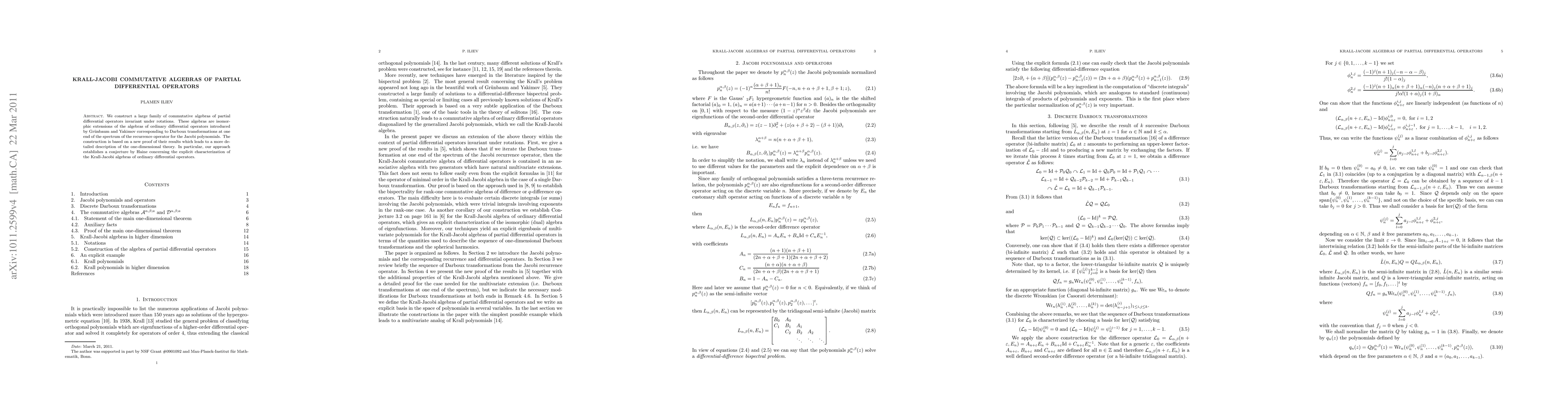We construct a large family of commutative algebras of partial differential operators invariant under rotations. These algebras are isomorphic extensions of the algebras of ordinary differential operators introduced by Grunbaum and Yakimov corresponding to Darboux transformations at one end of the spectrum of the recurrence operator for the Jacobi polynomials. The construction is based on a new proof of their results which leads to a more detailed description of the one-dimensional theory. In particular, our approach establishes a conjecture by Haine concerning the explicit characterization of the Krall-Jacobi algebras of ordinary differential operators.