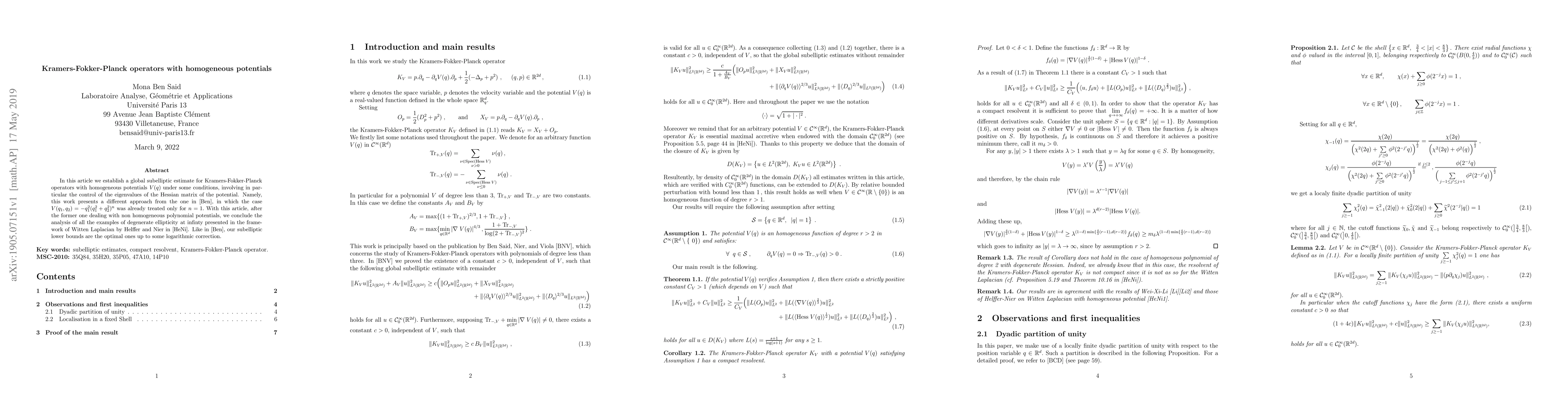 This paper establishes a global subelliptic estimate for Kramers-Fokker-Planck operators with homogeneous potentials, focusing on controlling the eigenvalues of the potential's Hessian matrix. It presents a novel approach compared to previous studies, concluding the analysis of all examples of degenerate ellipticity at infinity within the Witten Laplacian framework.